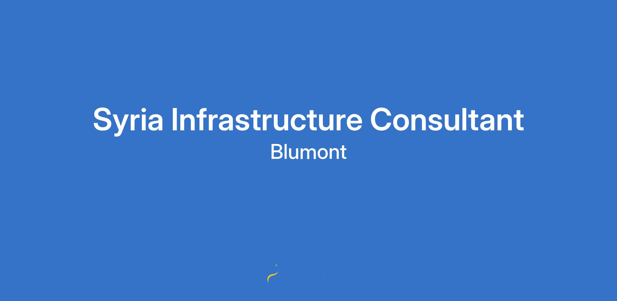 Blumont seeks to engage short-term (up to 60 days) infrastructure expertise with an engineering background to conduct a strategic positioning and capture assessment for infrastructure programming in Syria. This consultancy will be open to two possible configurations: