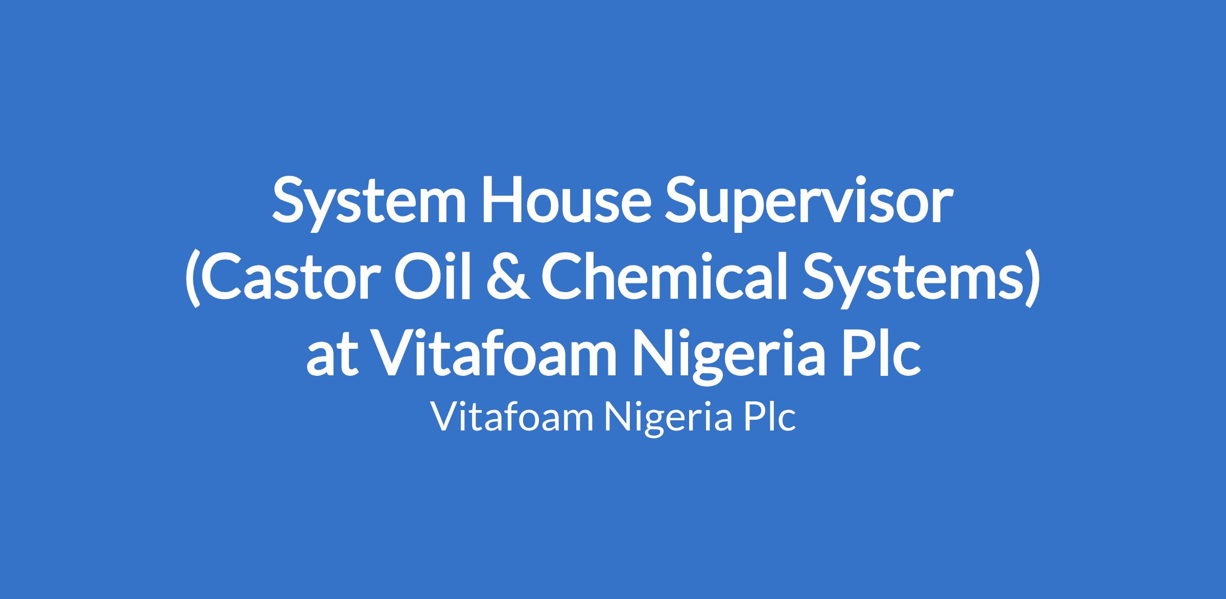 System House Supervisor (Castor Oil & Chemical Systems) at Vitafoam Nigeria Plc