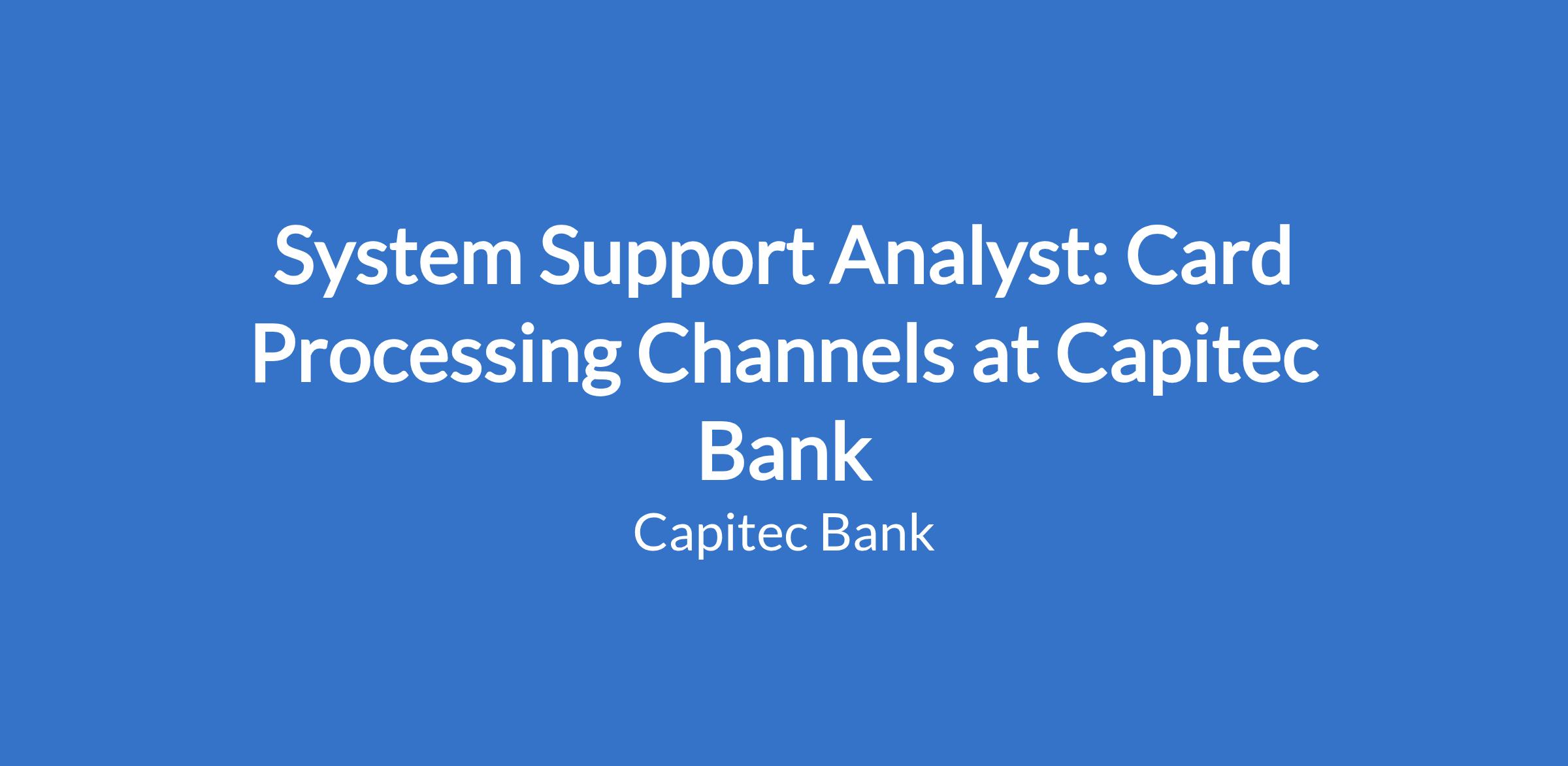 System Support Analyst: Card Processing Channels at Capitec Bank