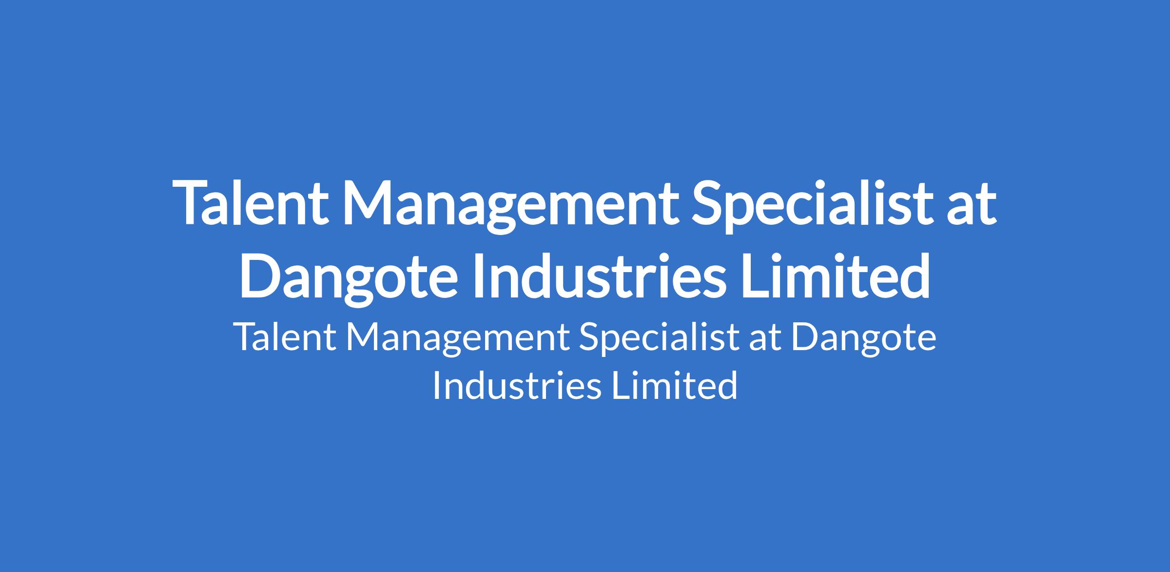 Dangote Industries Limited is recruiting to fill the position of: Talent Management Specialist. Interested candidates should possess a B.Sc / B.A or M.Sc Degree in Human Resources or any Social Science course or equivalent with 3-5 years of experience in Talent management, Learning & Development, or Organizational Development.
