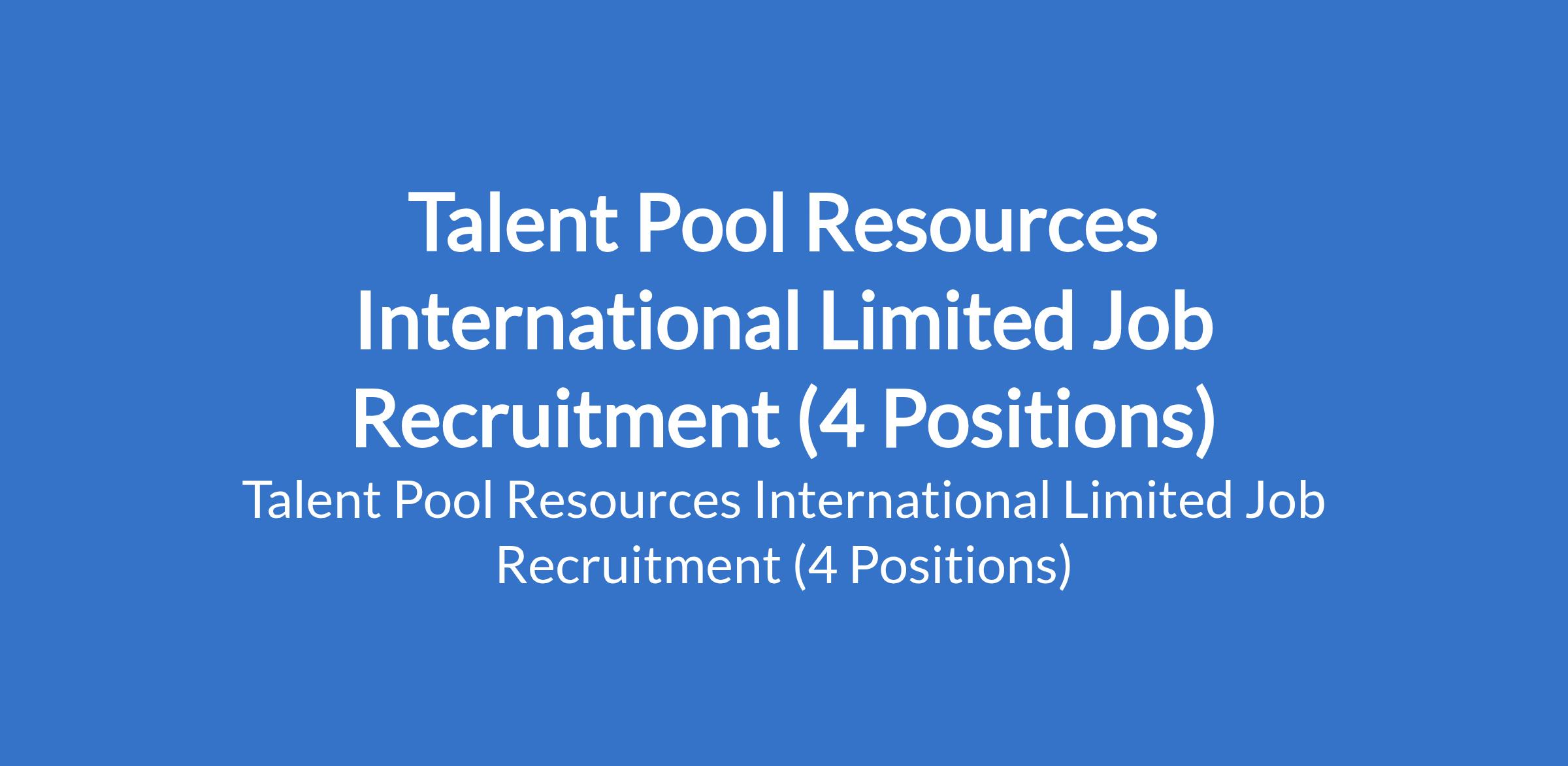Talent Pool Resources International Limited Job Recruitment (4 Positions)
