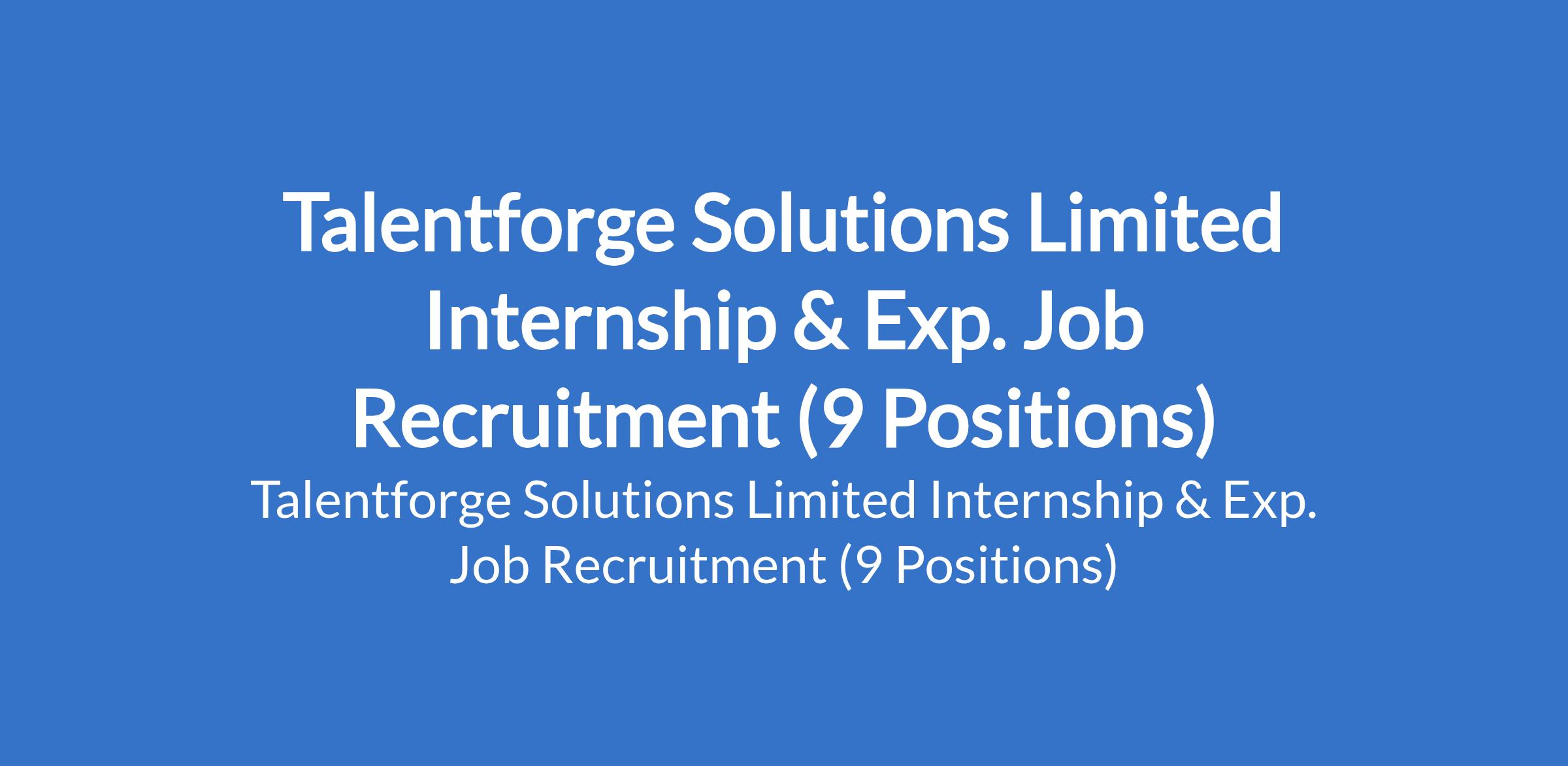 Talentforge Solutions Limited is recruiting suitably qualified candidates to fill the following Internship & Experienced positions in Abuja (FCT) & Lagos State: HR / Admin Intern, Driver, Business Development Manager - HR Services, Operation Manager, Visa and Tour Officer, Influencer Relationship Manager, Influencer Campaign Assistant, Business Development Manager, and Solar Sales Executive.