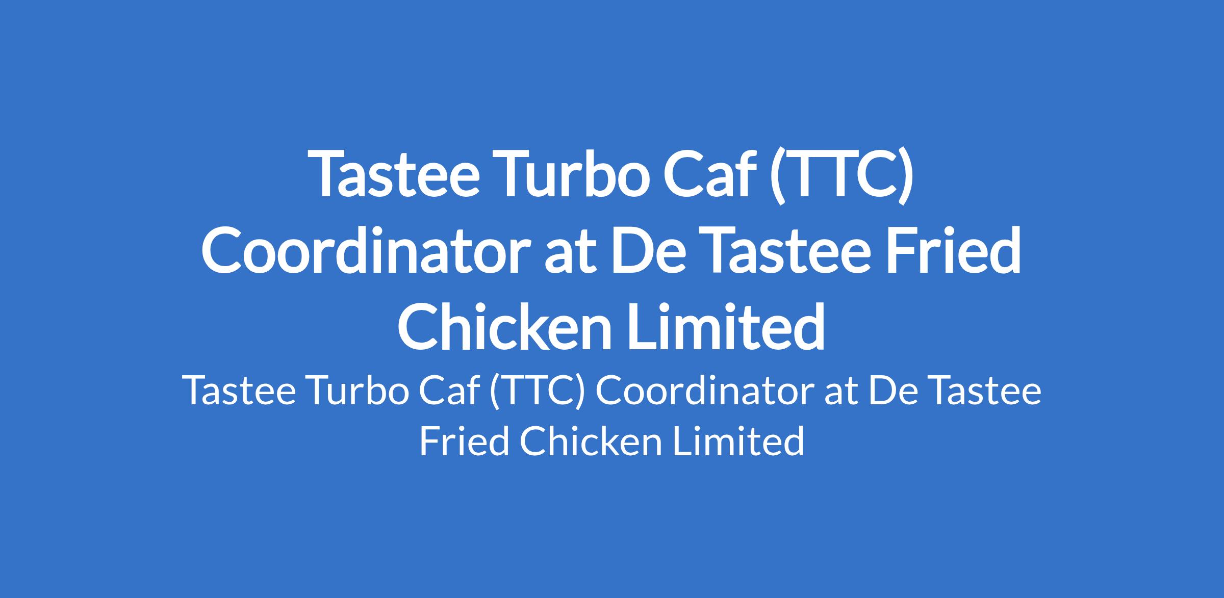De Tastee Fried Chicken Limited is recruiting to fill the position of: Tastee Turbo Caf (TTC) Coordinator. The position is located in Lagos State. Salary: N100,000 - N180,000 / month. Interested candidates should possess relevant qualifications with experience.