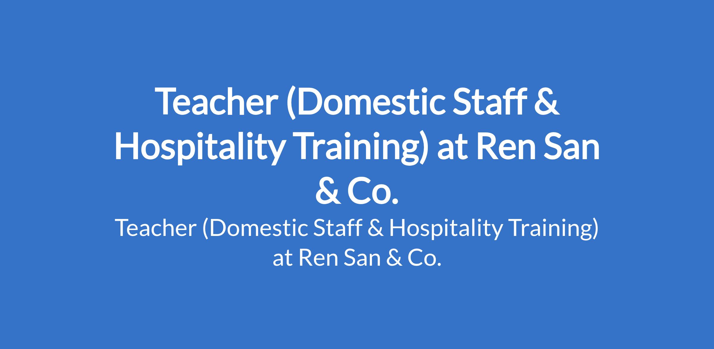 Ren San & Co. is recruiting to fill the position of: Teacher (Domestic Staff & Hospitality Training). The position is located in Abuja (FCT). Interested candidates should possess a Bachelors Degree or relevant certification in Hospitality Management, Home Economics, or a related field with a minimum of 3 years experience in teaching, hospitality training, domestic staff training/Hotel staff, or related instructional roles.