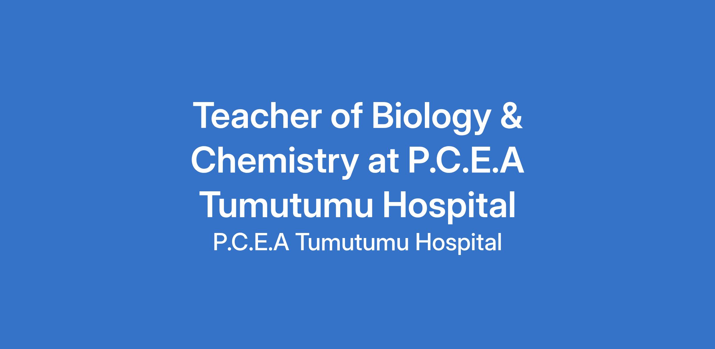 Teacher of Biology & Chemistry at P.C.E.A Tumutumu Hospital