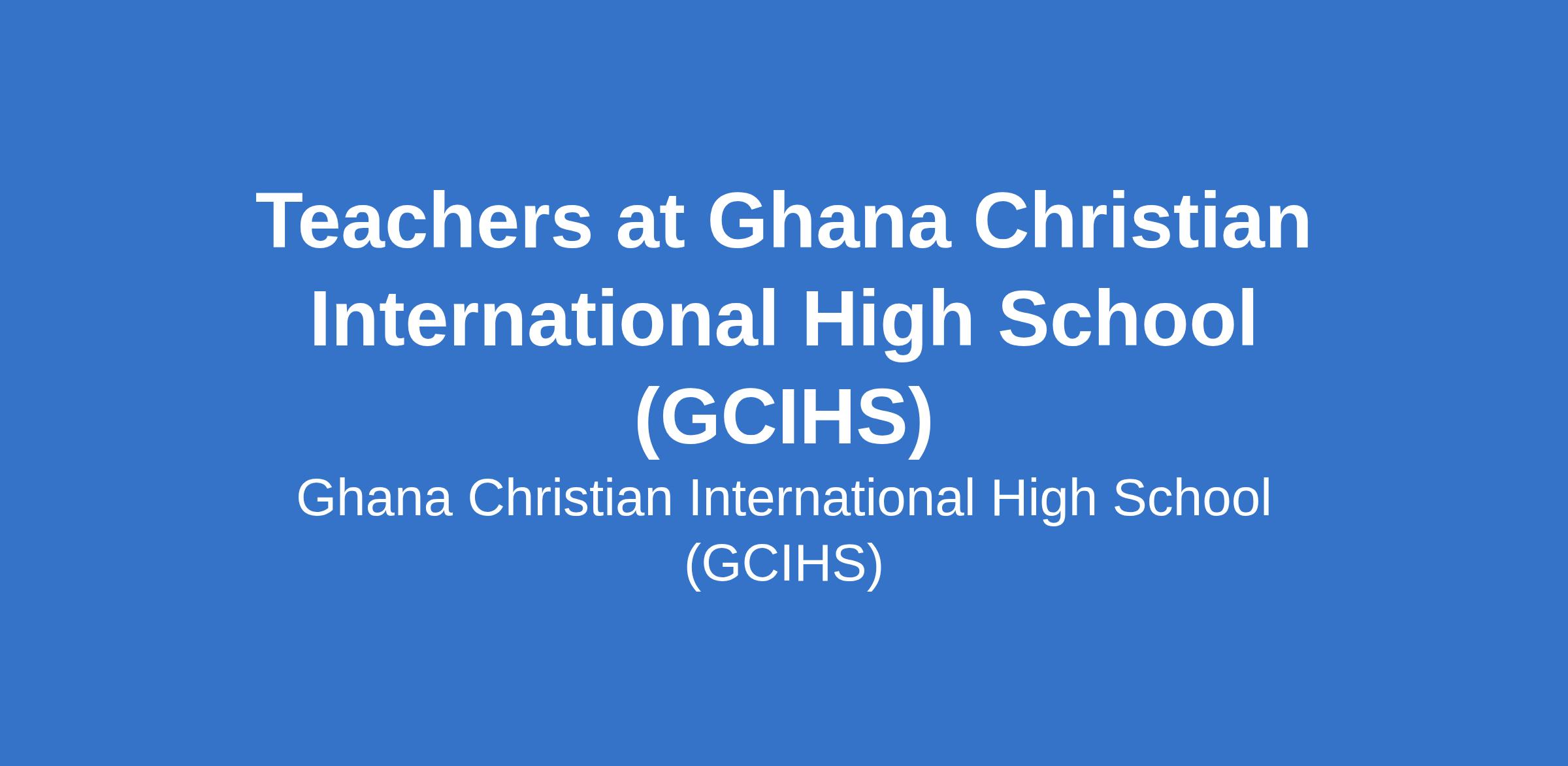 Ghana Christian International High School is seeking to recruit Teachers. We are looking for additional Teachers for our Junior School (Years 7-9) and our Senior School (Years 10-13).