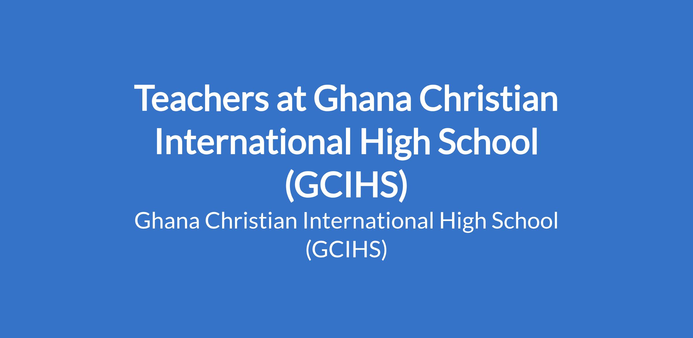 Ghana Christian International High School is seeking to recruit Teachers. We are looking for additional Teachers for our Junior School (Years 7-9) and our Senior School (Years 10-13).
