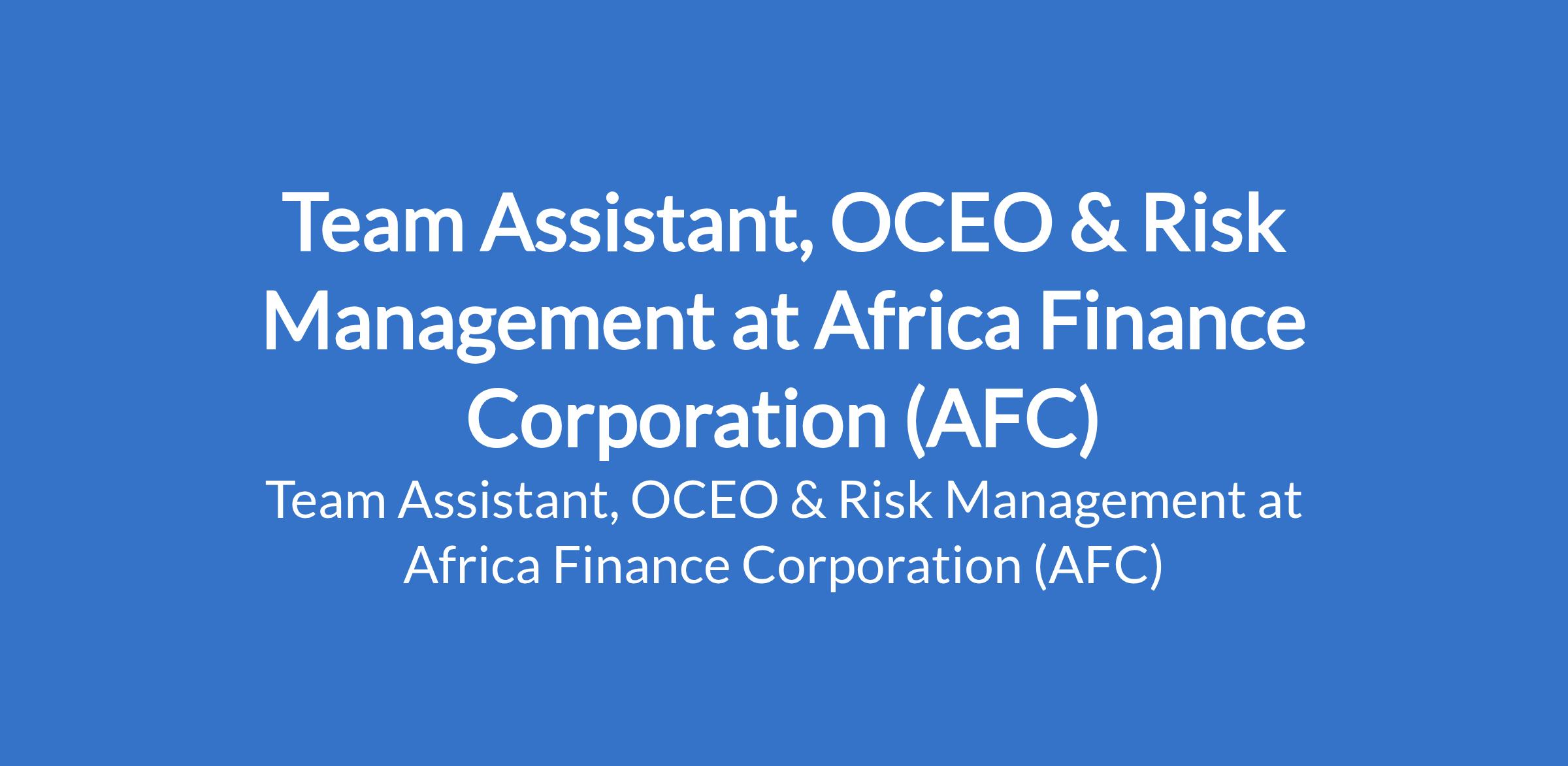 Africa Finance Corporation (AFC) is recruiting to fill the position of: Team Assistant, OCEO & Risk Management. The position is located in Lagos State. Interested candidates should possess a First Degree in any discipline with a minimum of 3 years of relevant experience in an administrative position.