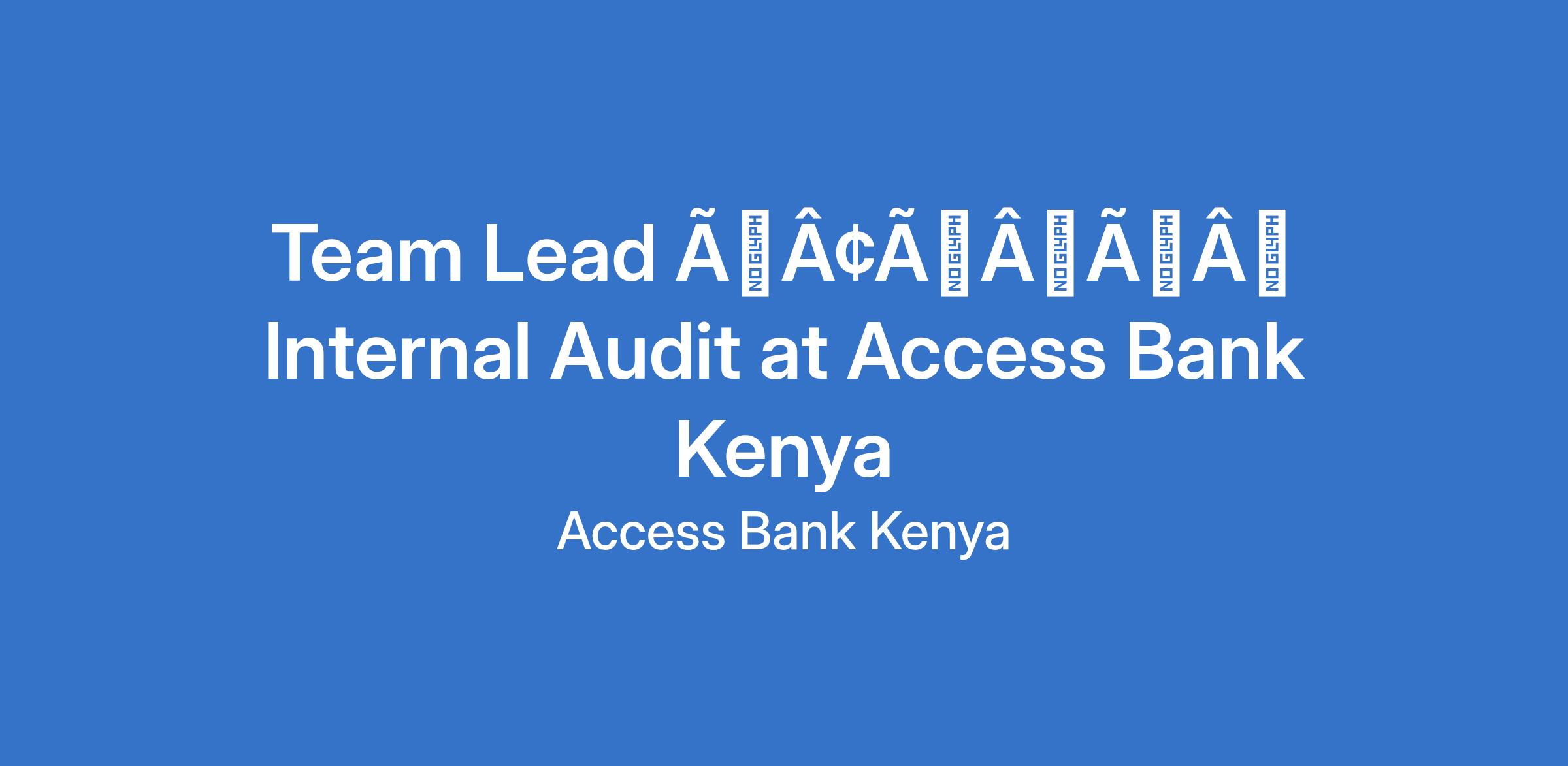 Team Lead âÃÂàInternal Audit at Access Bank Kenya