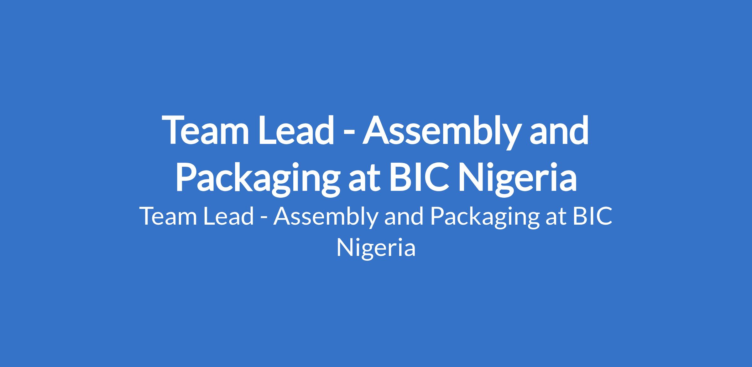 Team Lead - Assembly and Packaging at BIC Nigeria