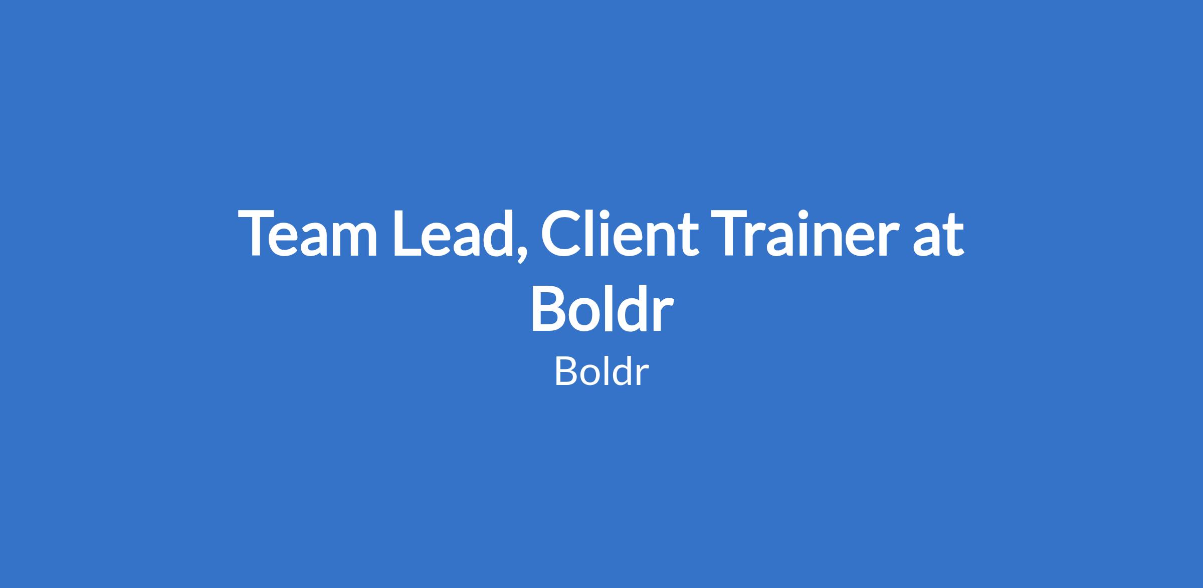 Team Lead, Client Trainer at Boldr