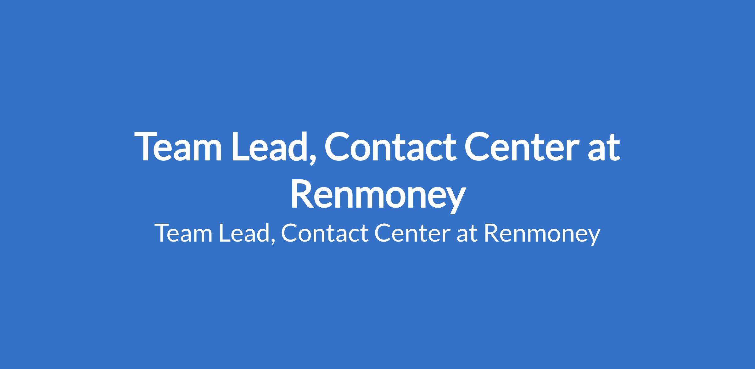 Renmoney is recruiting to fill the position of: Team Lead, Contact Center. The position is located in Lagos State. Interested candidates should possess relevant qualifications with 47 years of experience in customer service/contact center operations