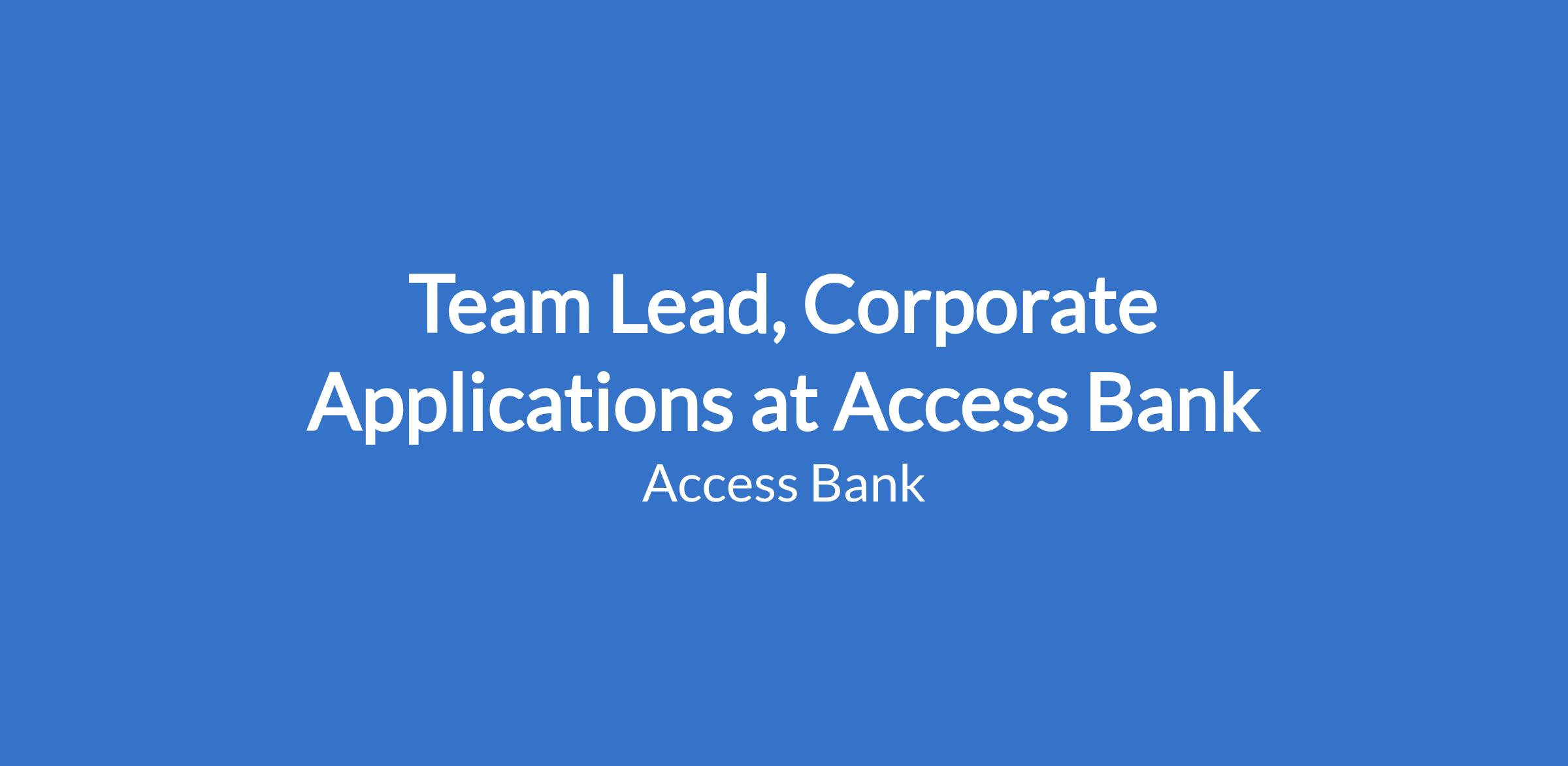 Team Lead, Corporate Applications at Access Bank