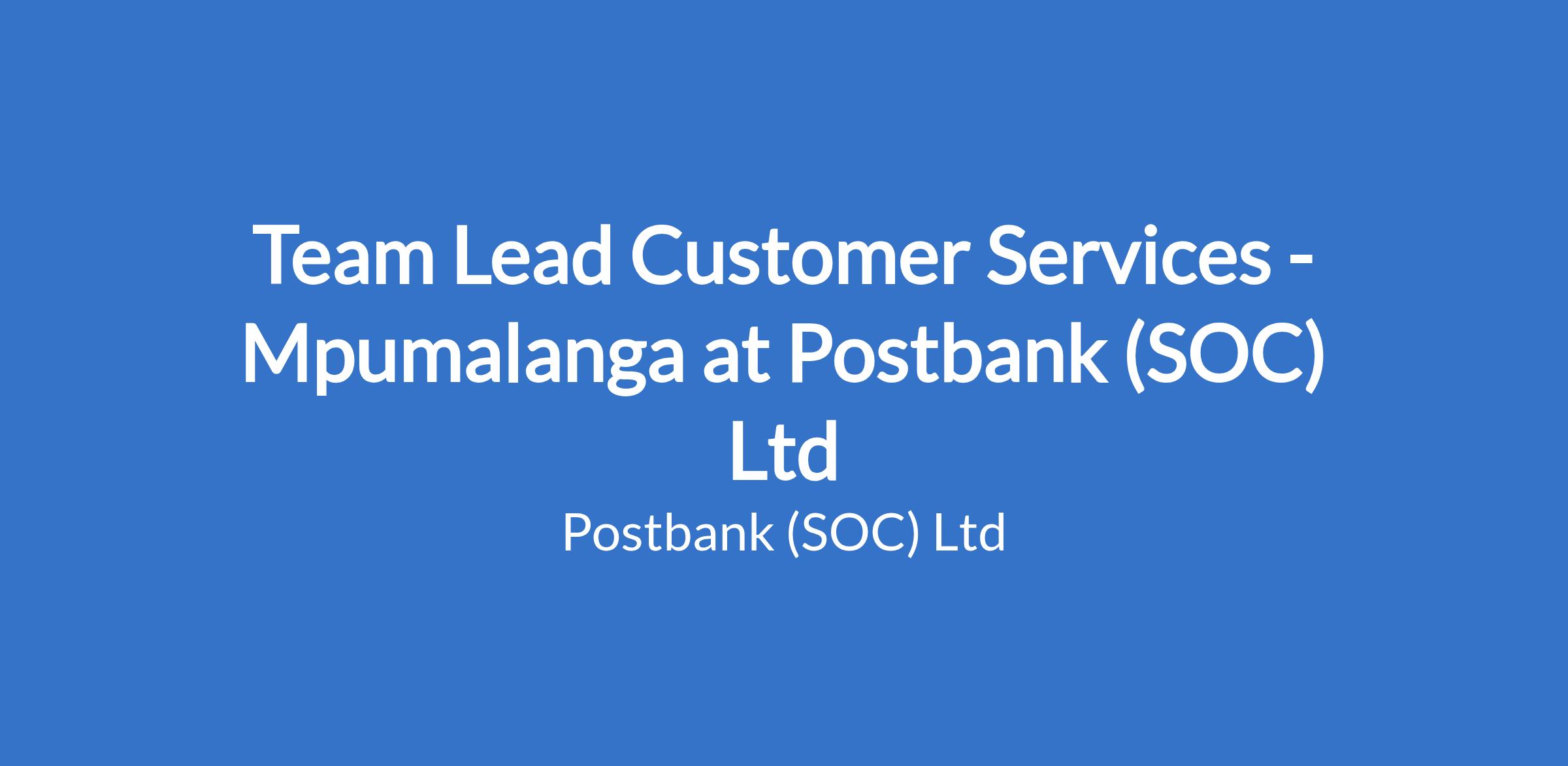Responsible for the supervision of the issuing of bank cards to customers at the allocated sites. This includes the day-to-day management of the distribution including supervision of staff. The Team Lead Customer Services (TL) serves as Postbank's in-store banking representative within partnered retailers.