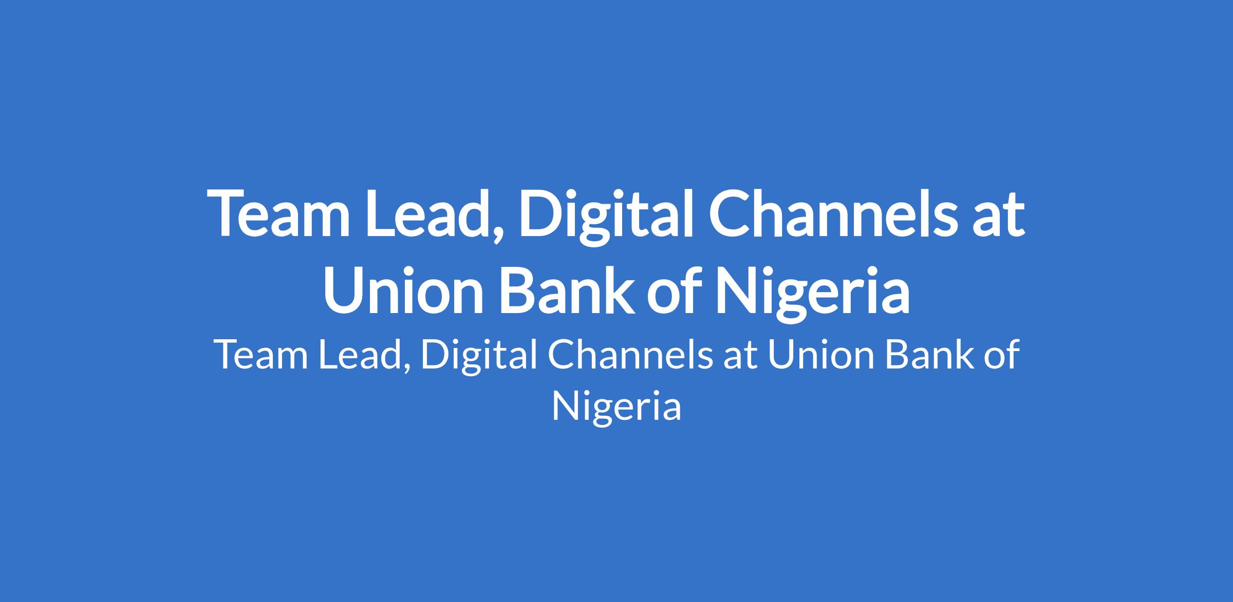 Team Lead, Digital Channels at Union Bank of Nigeria