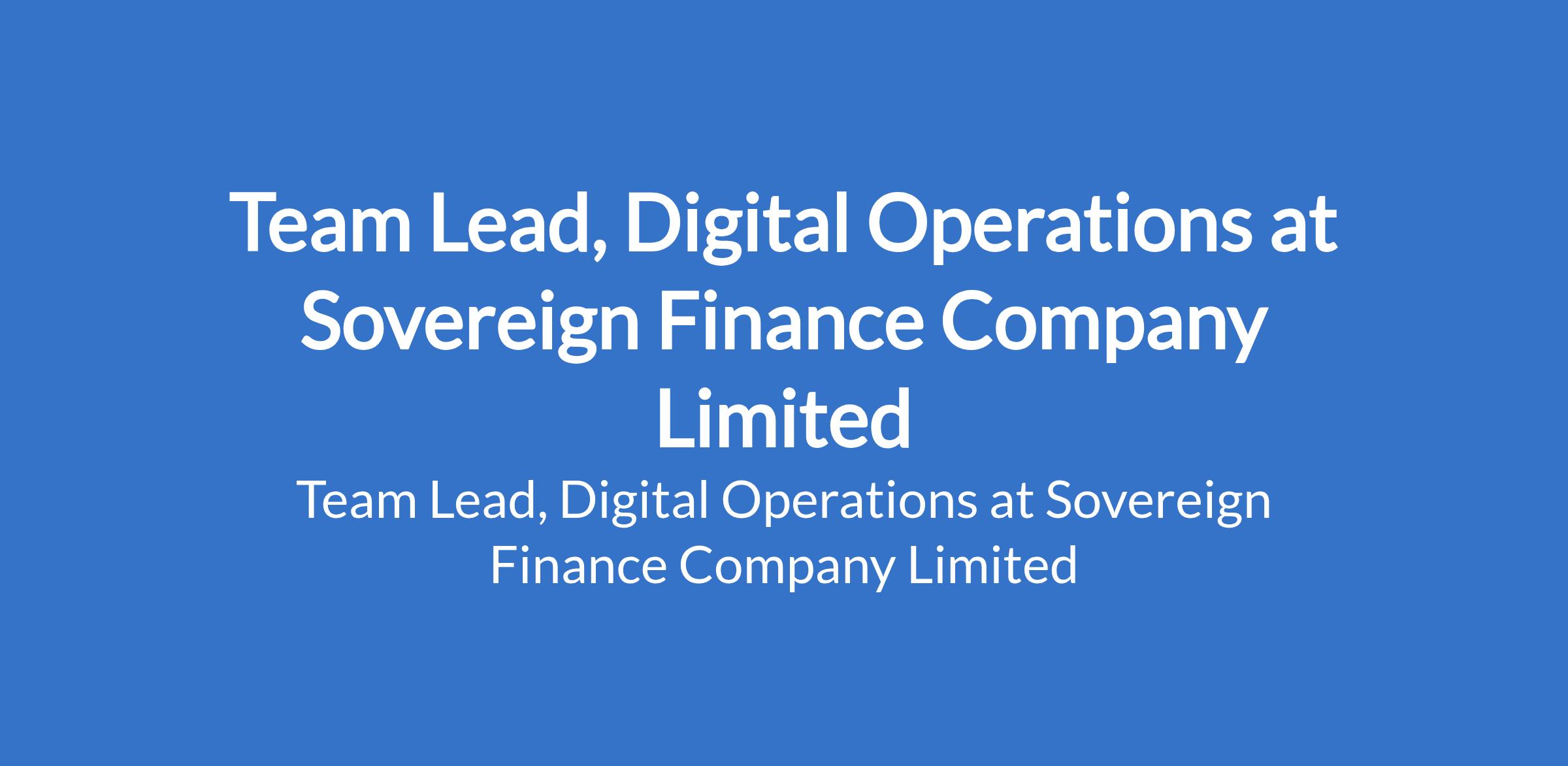 Sovereign Finance Company Limited is recruiting to fill the position of: Team Lead, Digital Operations. The position is located in Lagos State. Salary: N500,000 - N750,000 monthly. Interested candidates should possess a Bachelors Degree in Business Administration, Information Systems, Computer Science, or a related field with 3 - 4 years experience in digital operations, payments, or fintech operations