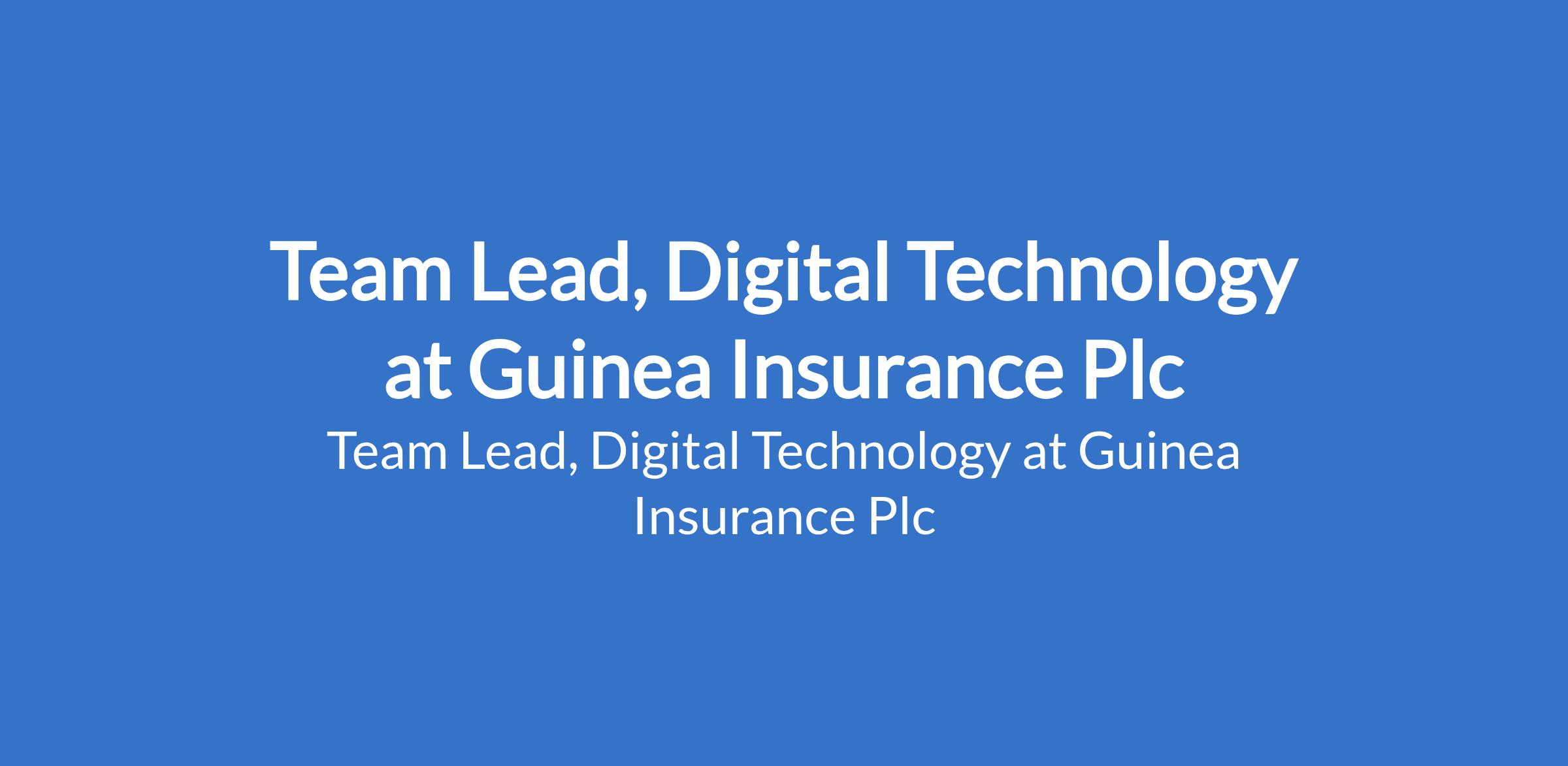 Guinea Insurance Plc is recruiting to fill the position of: Team Lead, Digital Technology . The position is located in Lagos State. Interested candidates should possess a Bachelors Degree in IT, Computer Science, or related field with 5 - 8 years experience in IT/Digital roles with at least 23 years in leadership.