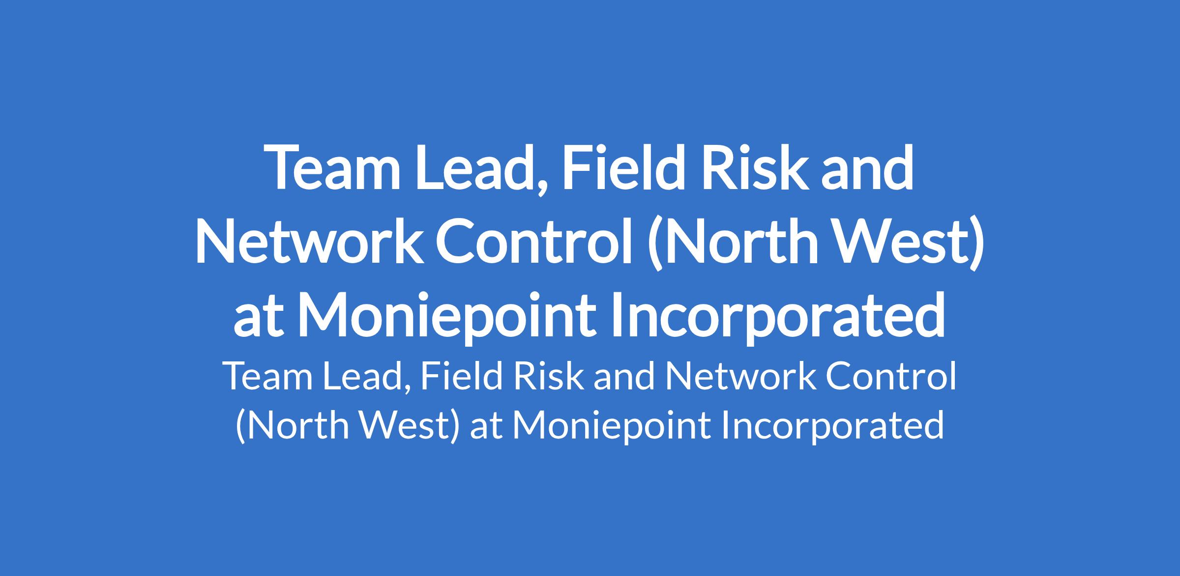 Moniepoint Incorporated is recruiting to fill the position of: Team Lead, Field Risk and Network Control. The position is located in North West Nigeria. Interested candidates should possess a Bachelors Degree in Risk Management, Accounting, Law, Business Administration, or a related field with 68 years experience in internal control, operational risk, investigations, internal audit, or compliance within financial services or fintech.