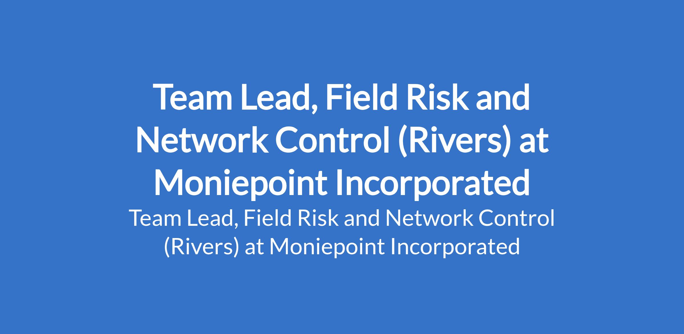 Moniepoint Incorporated is recruiting to fill the position of: Team Lead, Field Risk and Network Control. The position is Located in Rivers State. Interested candidates should possess a Bachelors Degree in Risk Management, Accounting, Law, Business Administration, or a related field with 68 years experience in internal control, operational risk, investigations, internal audit, or compliance within financial services or fintech.