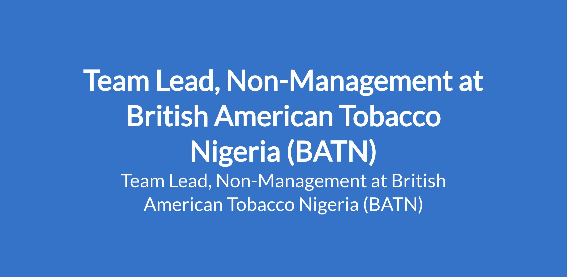 British American Tobacco Nigeria (BATN) is recruiting to fill the position of: Team Lead, Non-Management. The position is located in Ibadan, Oyo State. Interested candidates should possess a Bachelors Degree in Electrical / Mechanical Engineering with 2 years experience or an HND qualification with 5 years relevant experience.