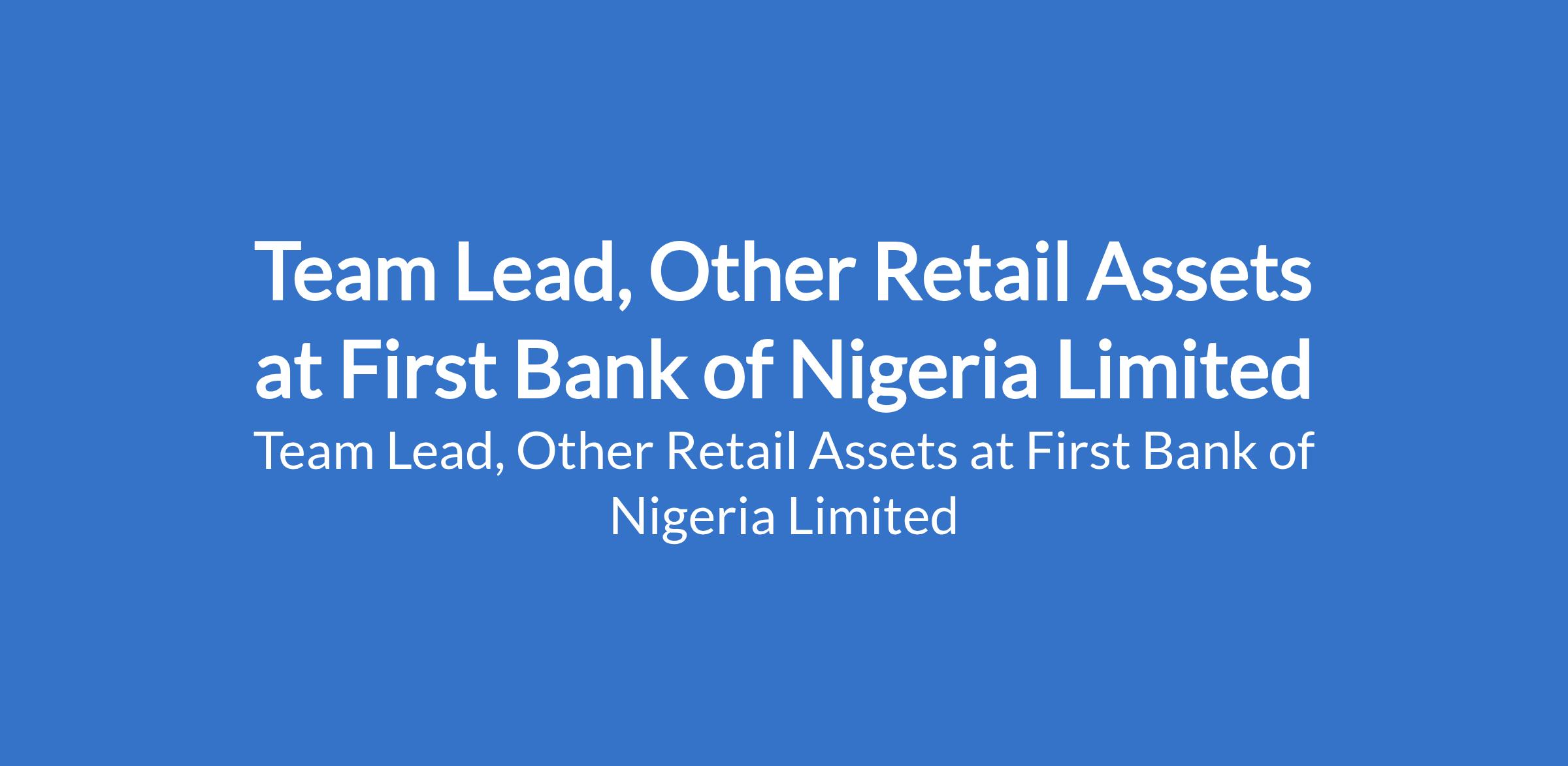 First Bank of Nigeria Limited is recruiting to fill the position of: Team Lead, Other Retail Assets. The position is located in Lagos State. Interested candidates should possess a Degree in a Business related discipline with seven years relevant experience.