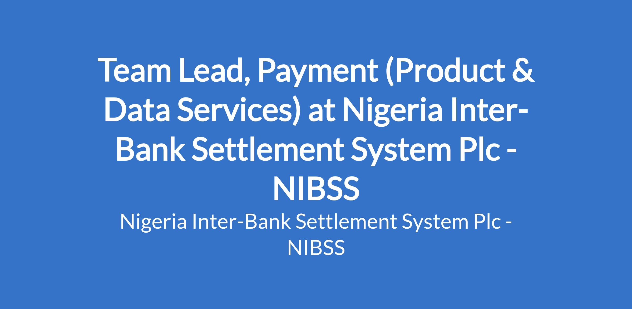 Team Lead, Payment (Product & Data Services) at Nigeria Inter-Bank Settlement System Plc - NIBSS