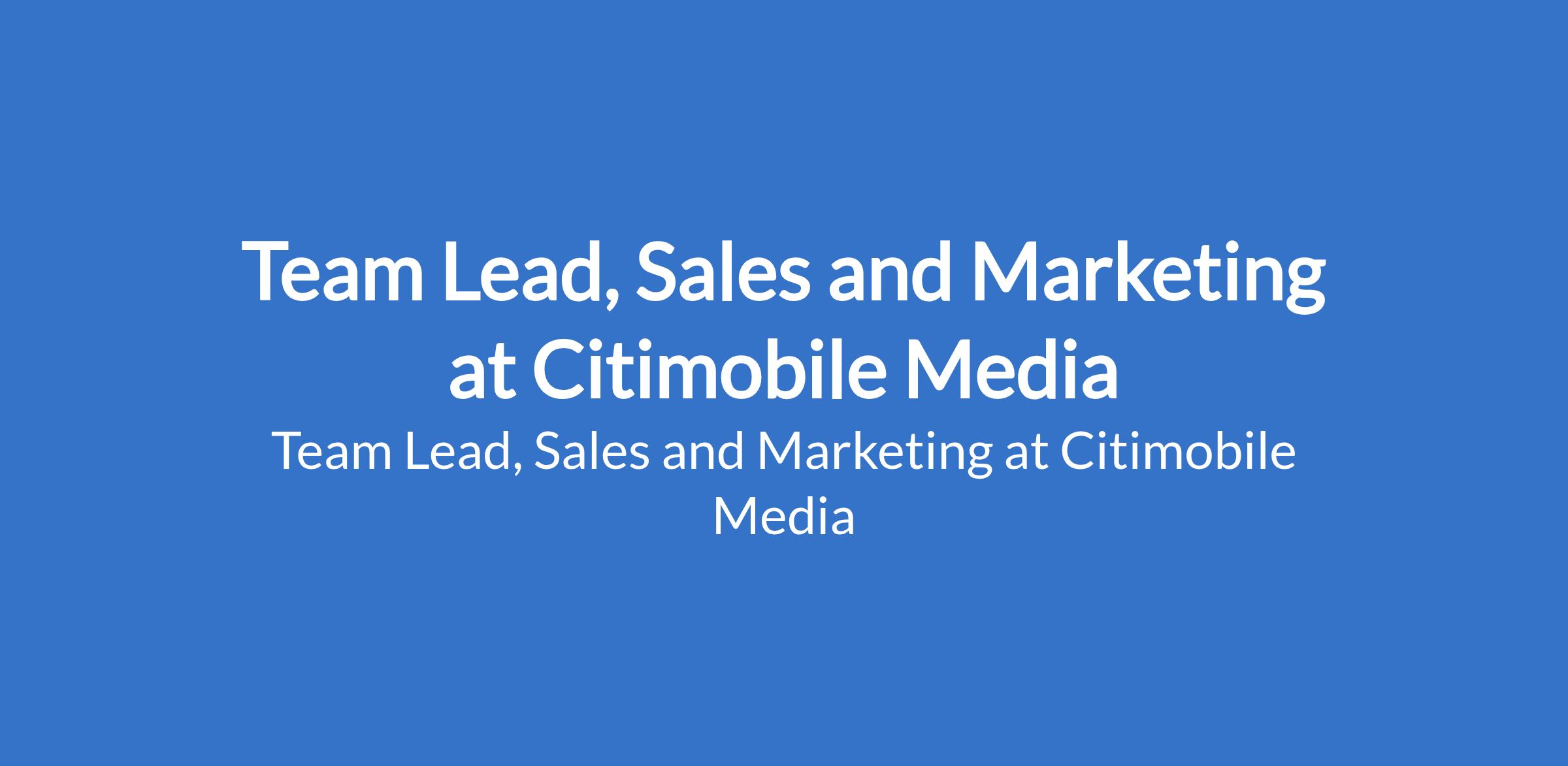 Citimobile Media is recruiting to fill the position of: Team Lead, Sales and Marketing. The position is located in Lekki Phase 1, Lagos State. The candidate must be result-driven and sales oriented, delegate responsibilities, motivate the team and holding meetings. Interested candidates should possess a BSc / MBA Degree in Marketing or related fields with a minimum of 5 years experience as a Sales/Marketing Lead.