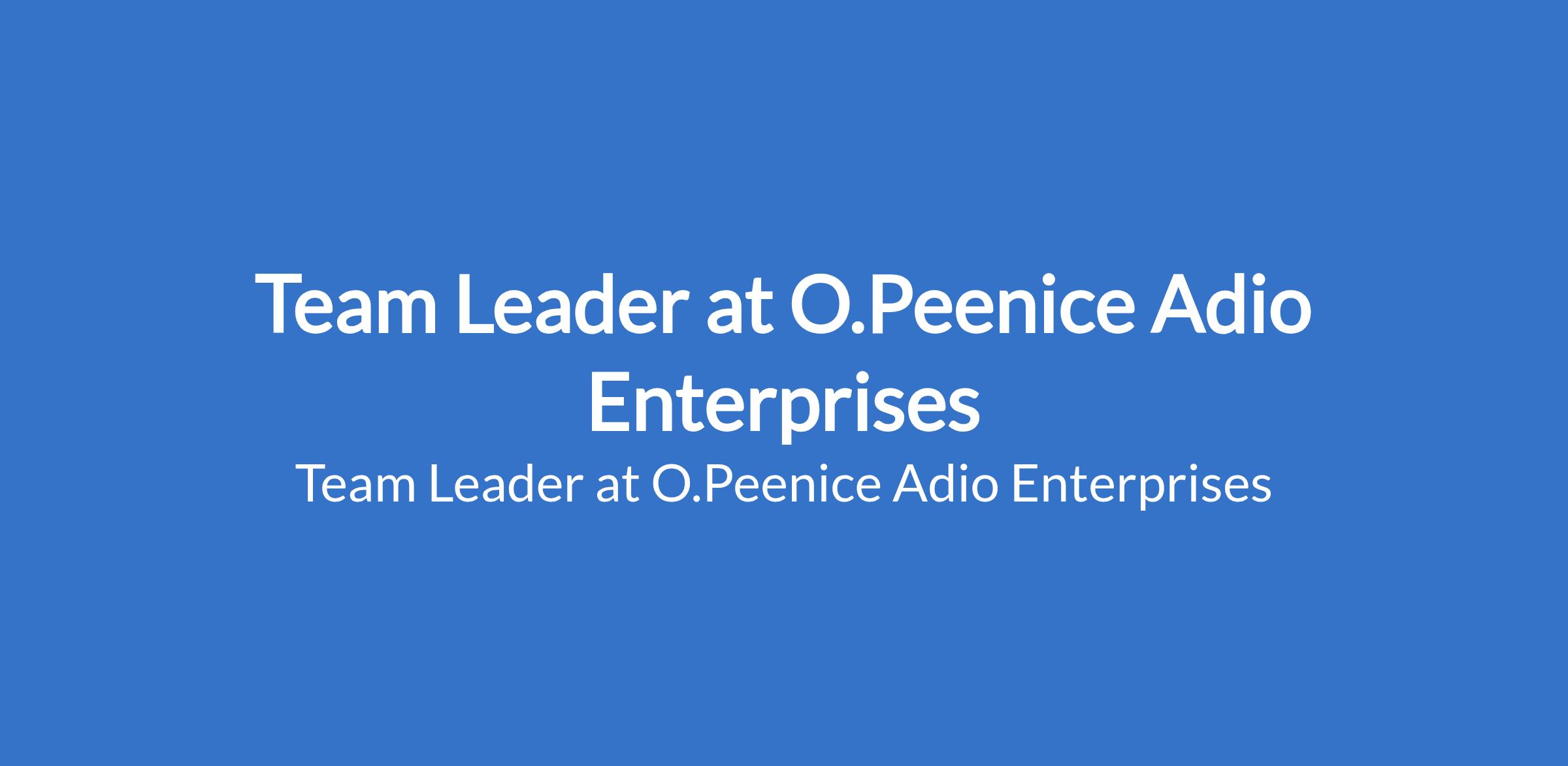 O.Peenice Adio Enterprises is recruiting to fill the position of: Team Leader. The position is located in Lagos State. Salary: N120,000 - N250,000 per month. Interested candidates should possess a Degree in Management or training in team leading is a plus with Proven work experience as a team leader or supervisor.