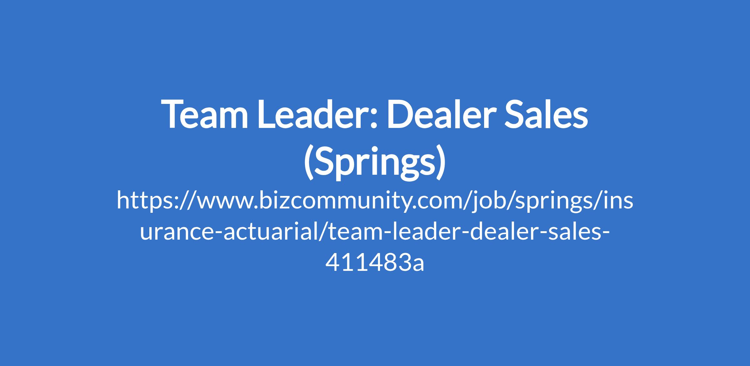 Team Leader: Dealer Sales (Springs)