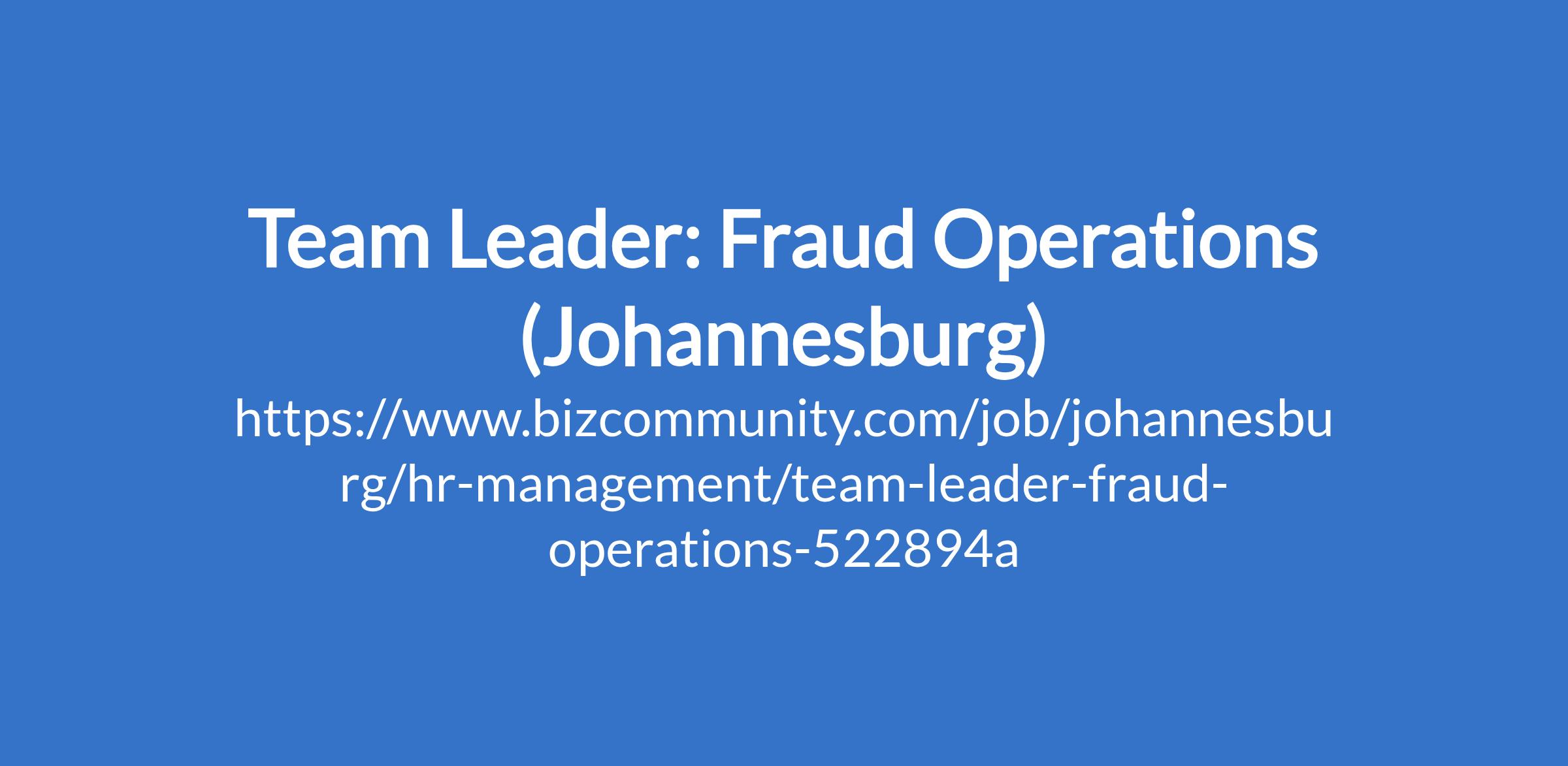 Team Leader: Fraud Operations (Johannesburg)