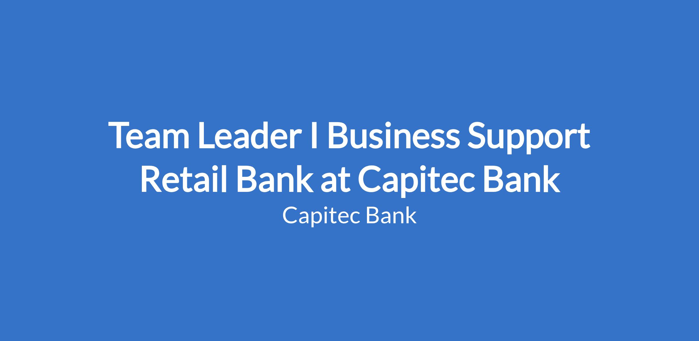 Team Leader I Business Support Retail Bank at Capitec Bank