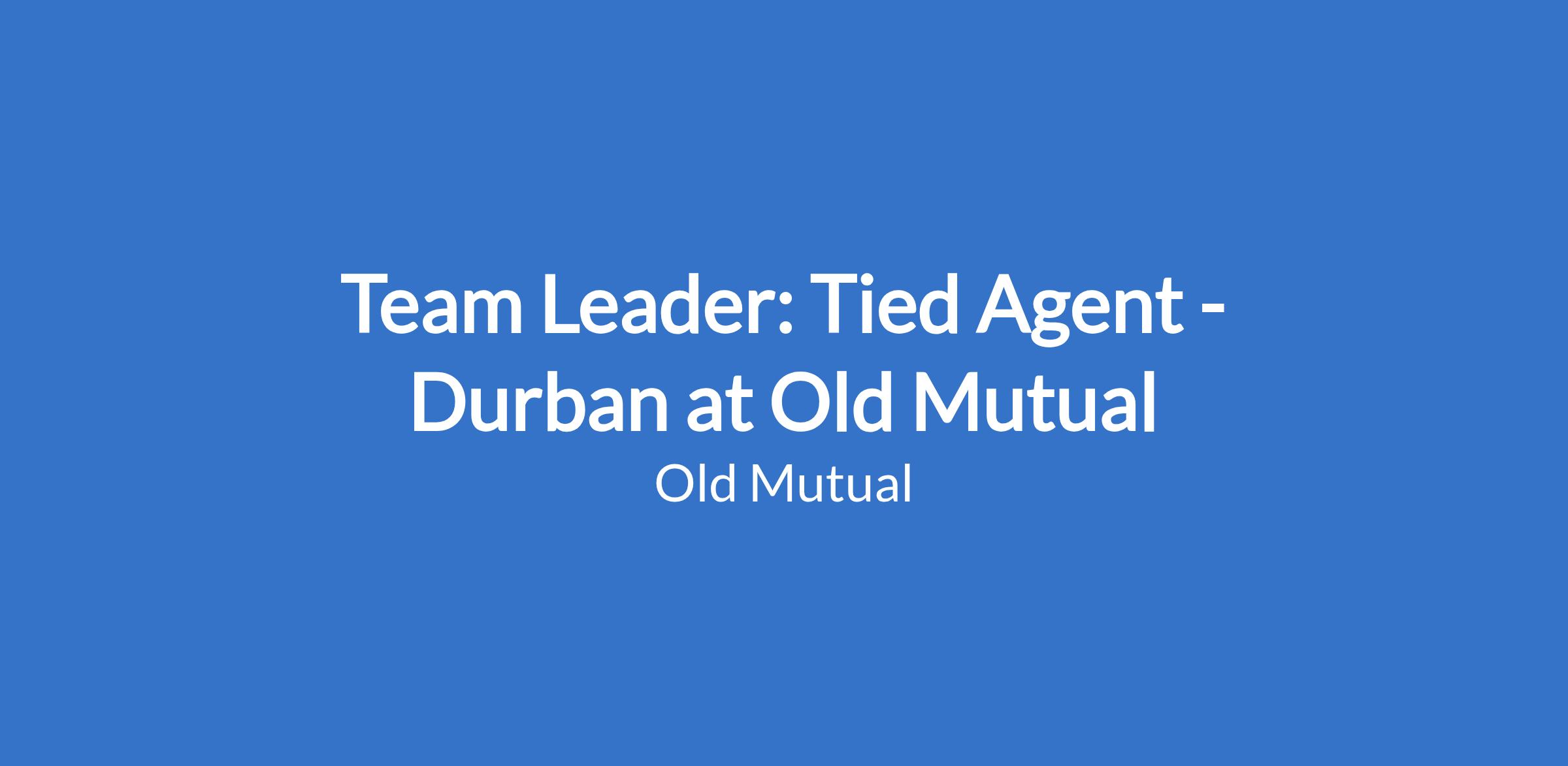 Team Leader: Tied Agent - Durban at Old Mutual