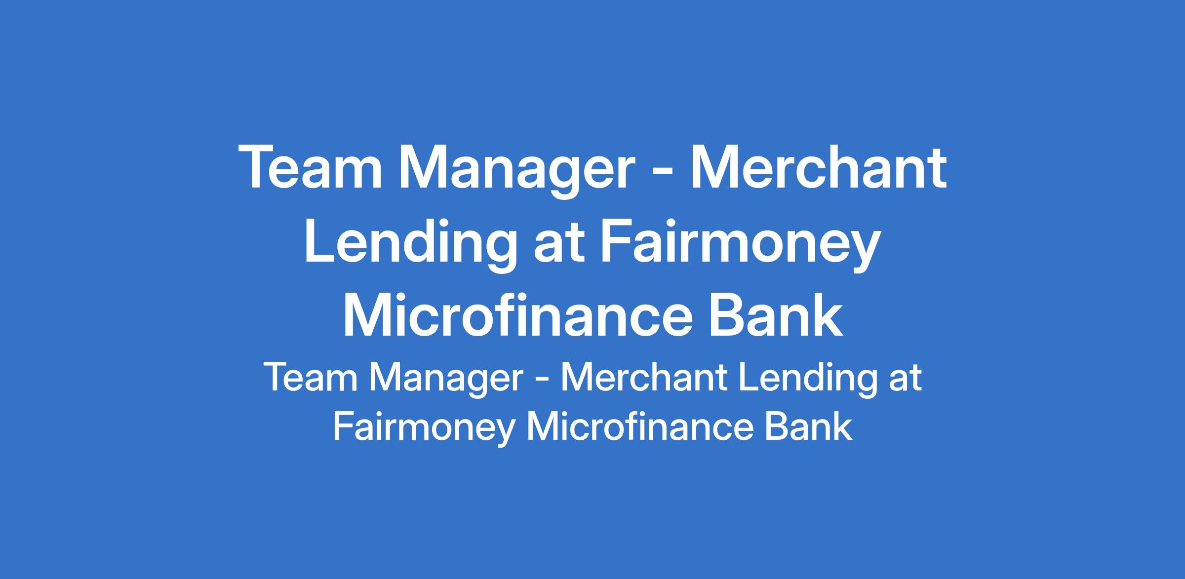 Fairmoney Microfinance Bank is recruiting to fill the position of: Team Manager - Merchant Lending. The position is located in Enugu State. Interested candidates should possess an HND qualification / Bachelor's Degree in Sales and Marketing or related fields with a minimum of 6 years of experience in Loan Sales / Portfolio Management and team management.