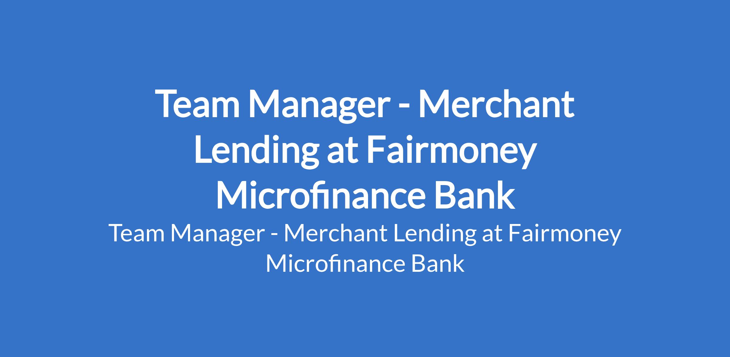 Fairmoney Microfinance Bank is recruiting to fill the position of: Team Manager - Merchant Lending. Interested candidates should possess an HND / Bachelor's Degree in Sales and Marketing or related fields with a minimum of 6 years of experience in Loan Sales / Portfolio Management and team management.