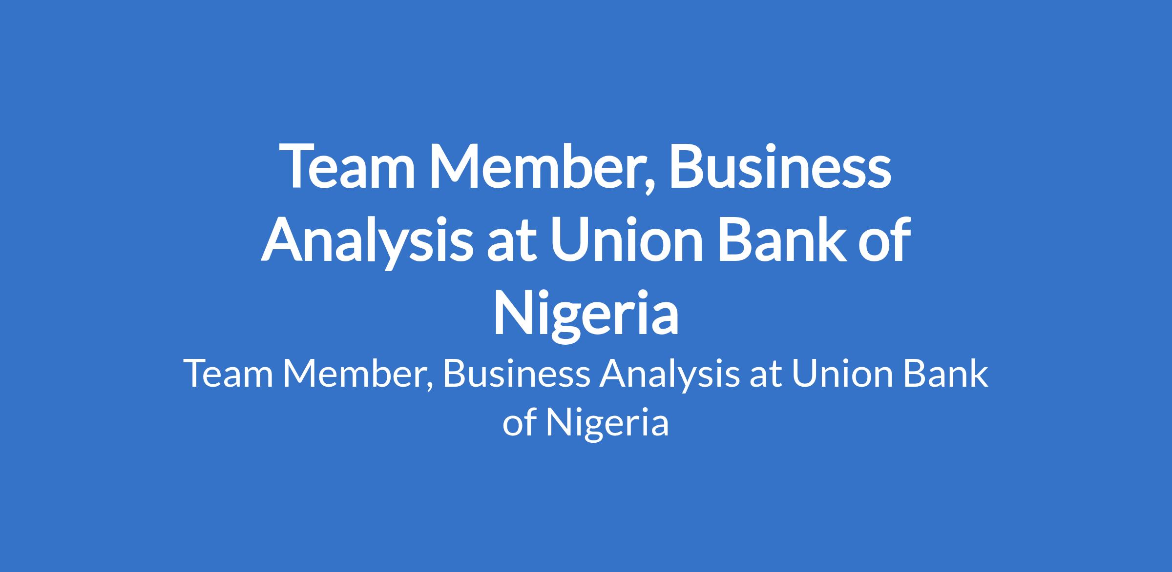 Team Member, Business Analysis at Union Bank of Nigeria