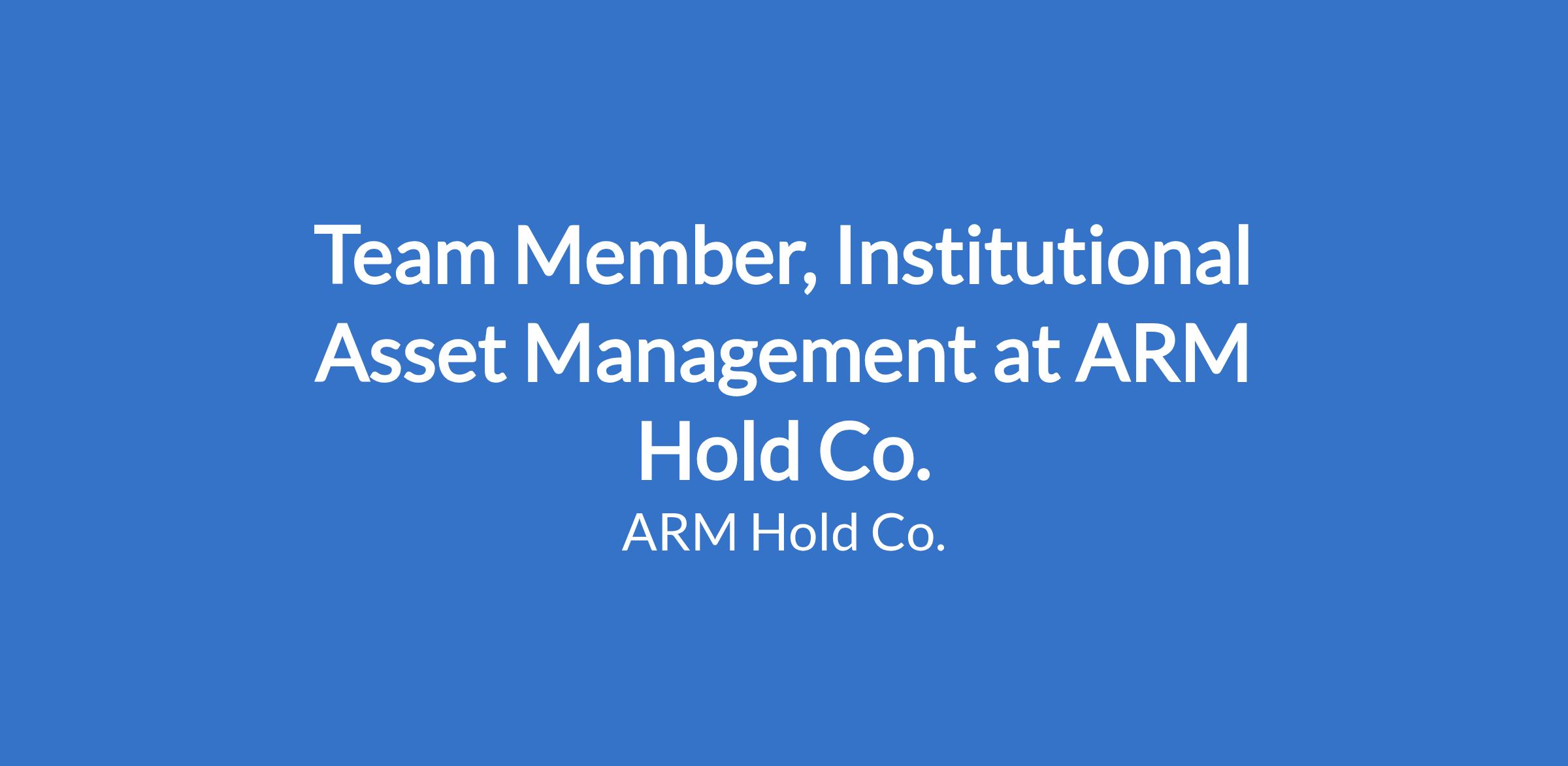 Team Member, Institutional Asset Management at ARM Hold Co.