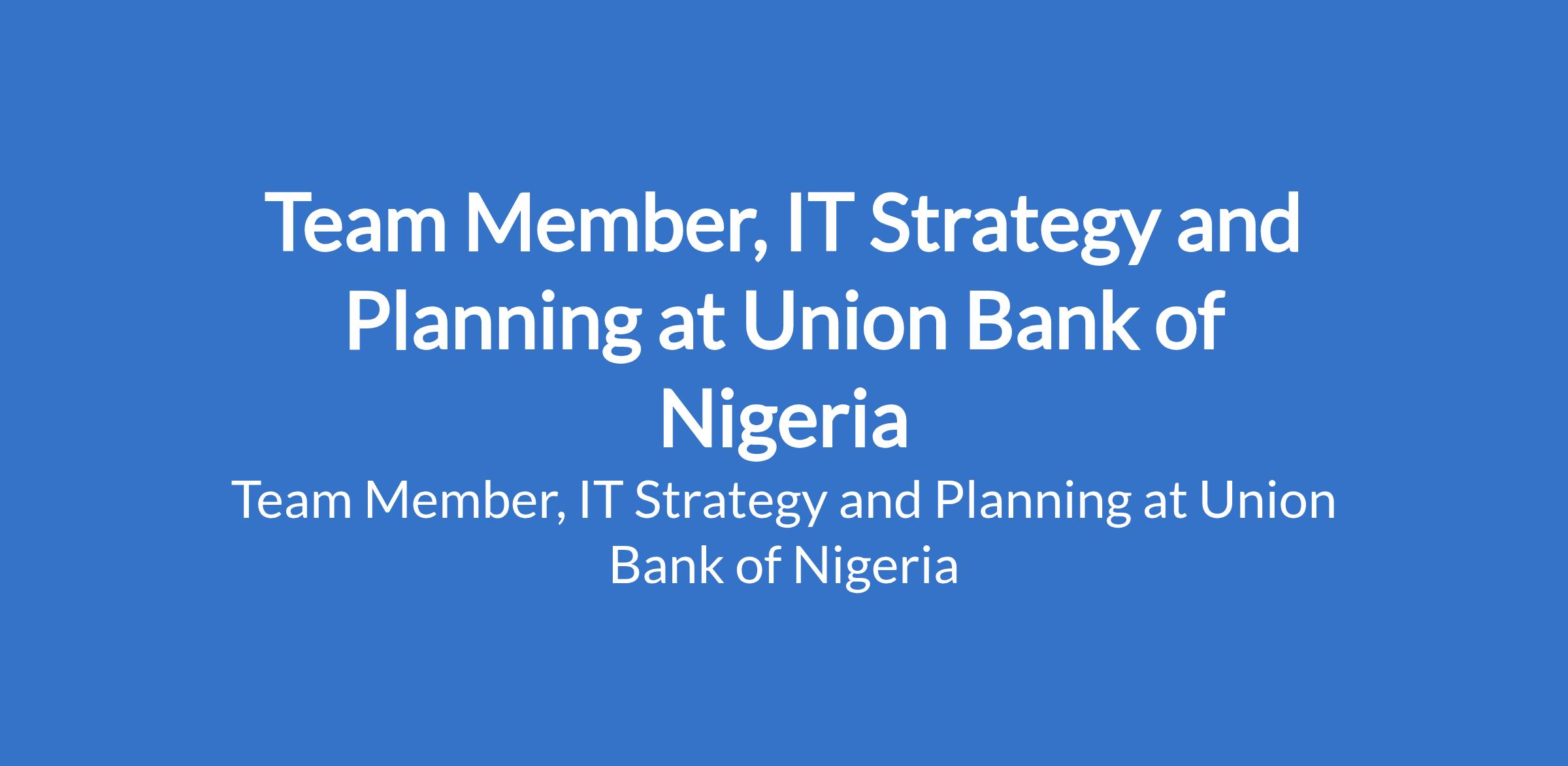 Team Member, IT Strategy and Planning at Union Bank of Nigeria
