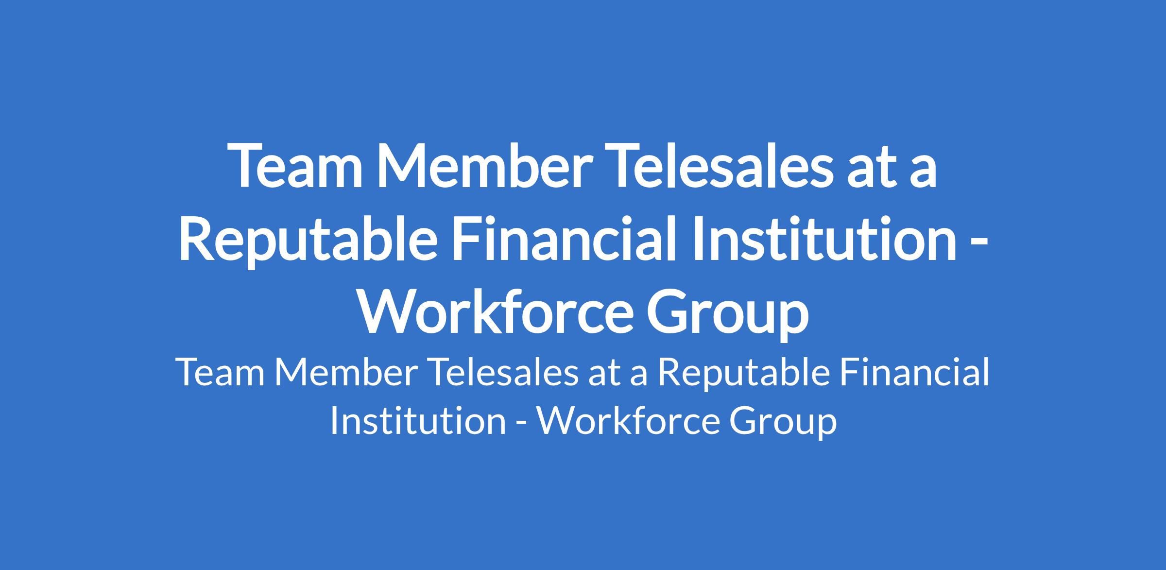 Workforce Group - Our client, a reputable financial institution is recruiting to fill the position of: Team Member Telesales. The position is located in Marina, Lagos State. Interested candidates should possess a B.Sc Degree with 0 - 3 years experience in sales or customer service.