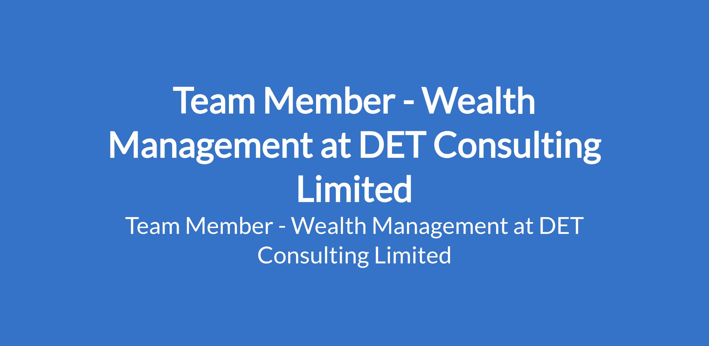 DET Consulting Limited is recruiting to fill the position of: Team Member - Wealth Management. The position is located in Lagos State. Salary: N500,000 - N750,000 monthly. Interested candidates should possess a First Degree or its equivalent with a minimum of 2 years experience in a Tier 1 bank and at least 2 years experience in Financial related institution, in a market-facing role.