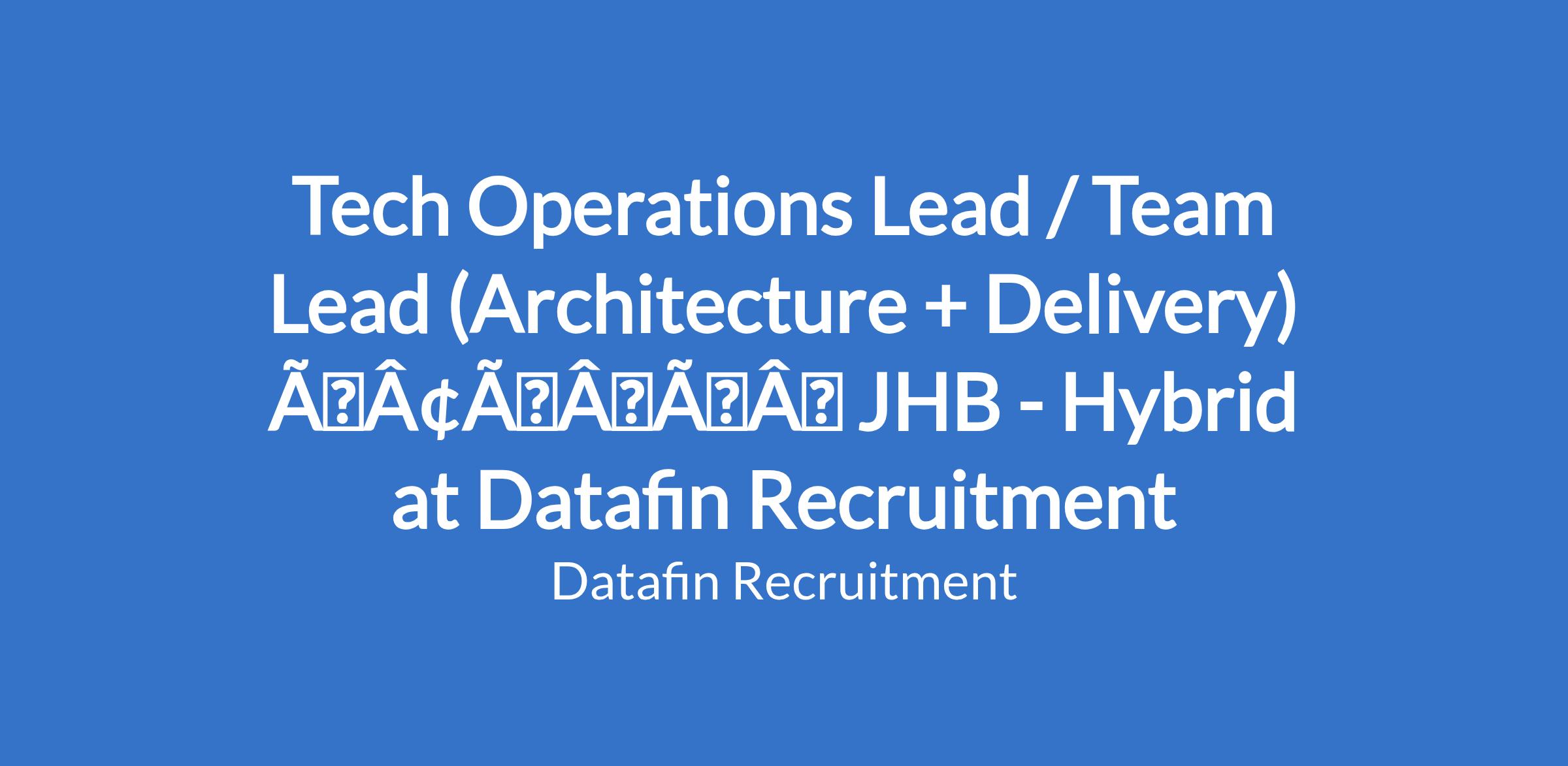 Tech Operations Lead / Team Lead (Architecture + Delivery) âÃÂàJHB - Hybrid at Datafin Recruitment