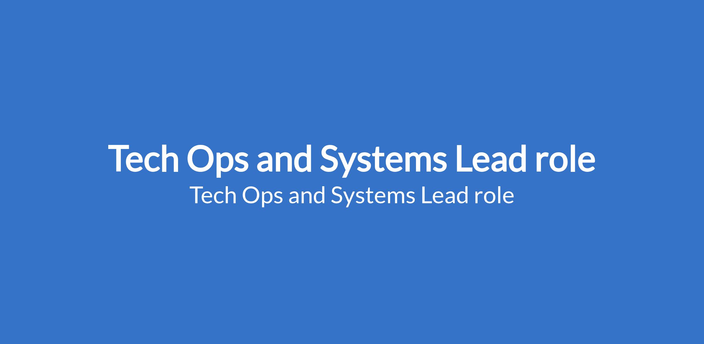 Tech Ops and Systems Lead role