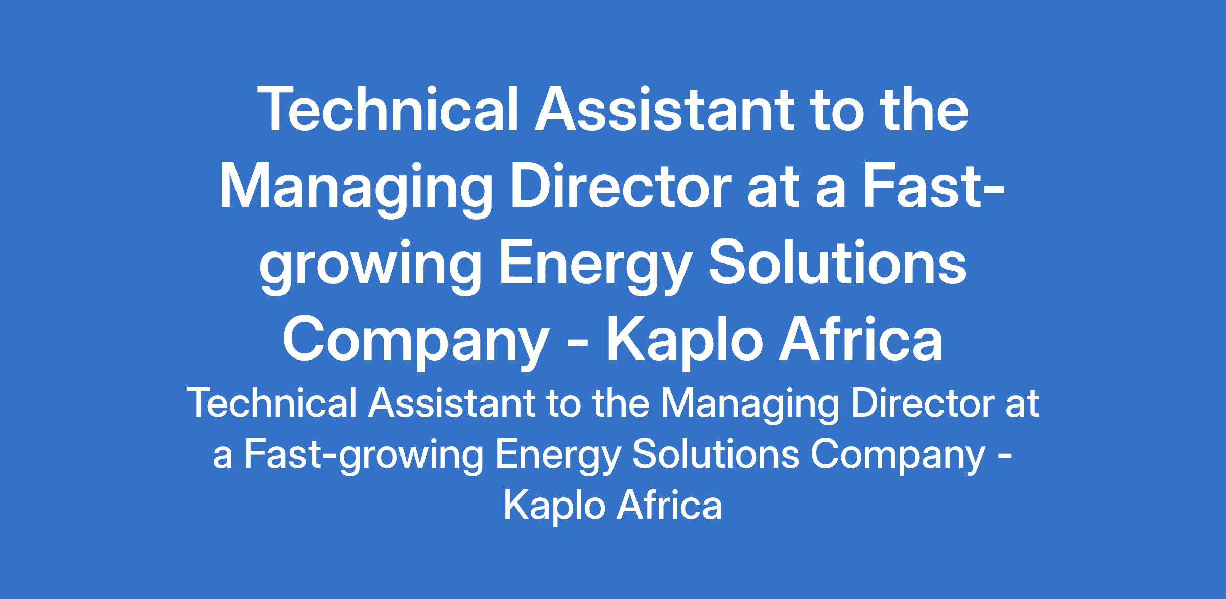Kaplo Africa - Our client, a Fast-growing Energy Solutions company is recruiting to fill the position of: Technical Assistant to the Managing Director. The position is located in Abuja (FCT). Salary: N400,000 monthly. Interested candidates should possess a Bachelors Degree (preferably First Class or Second Class Upper Degree) in Electrical Engineering with a minimum of 5 years relevant experience in solar/energy systems.