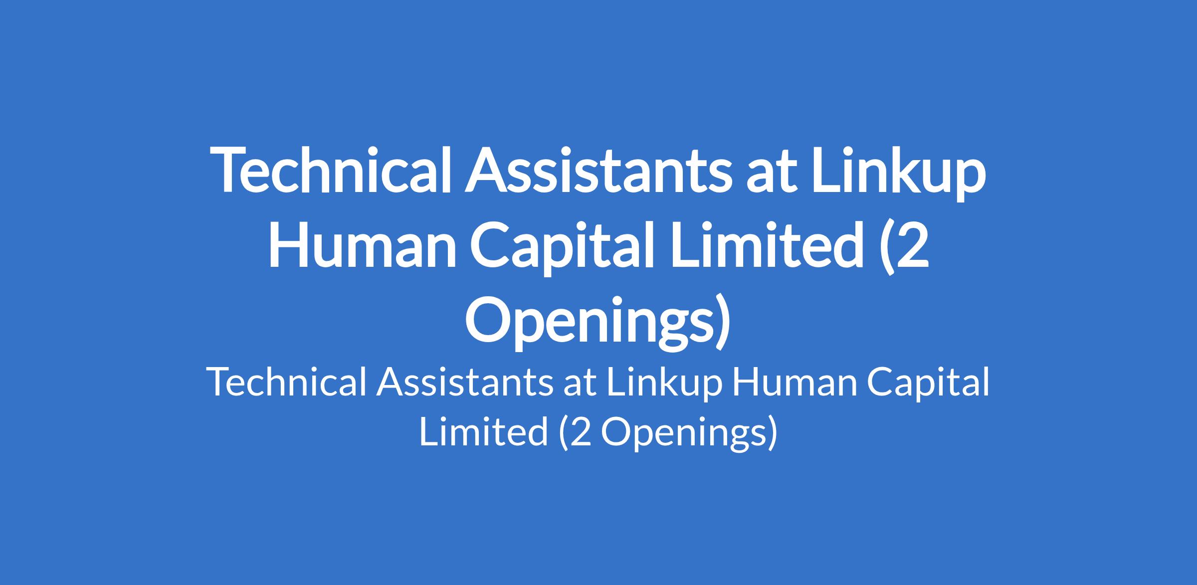 Linkup Human Capital Limited is recruiting to fill the position of: Technical Assistant. The position is located in Delta and Lagos States. Interested candidates should possess a Bachelors Degree or HND in Engineering (Mechanical, Civil, Electrical, Marine, Petroleum) or related disciplines with 5 10 years practical experience in the Oil & Gas sector.