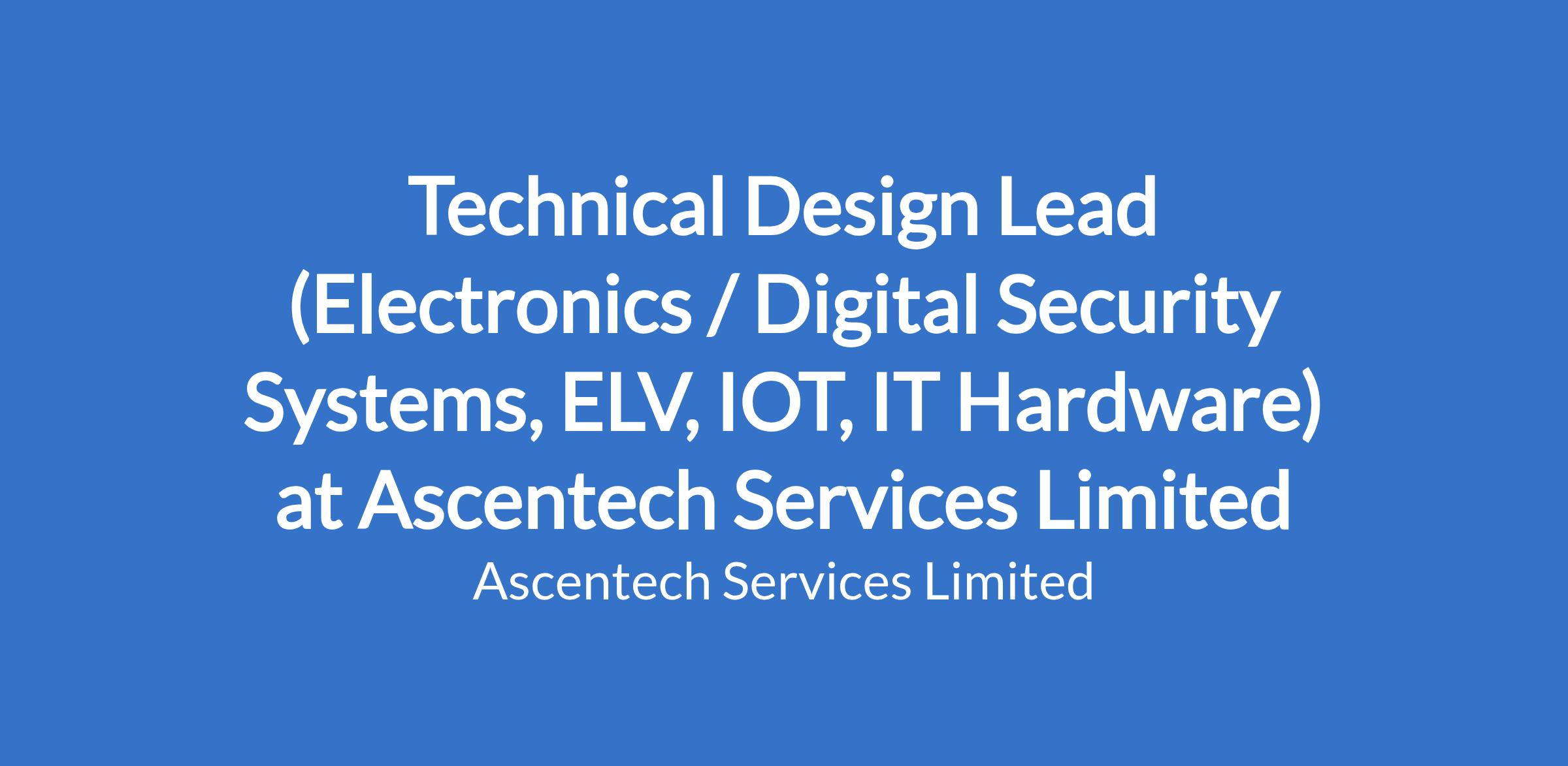 Technical Design Lead (Electronics / Digital Security Systems, ELV, IOT, IT Hardware) at Ascentech Services Limited