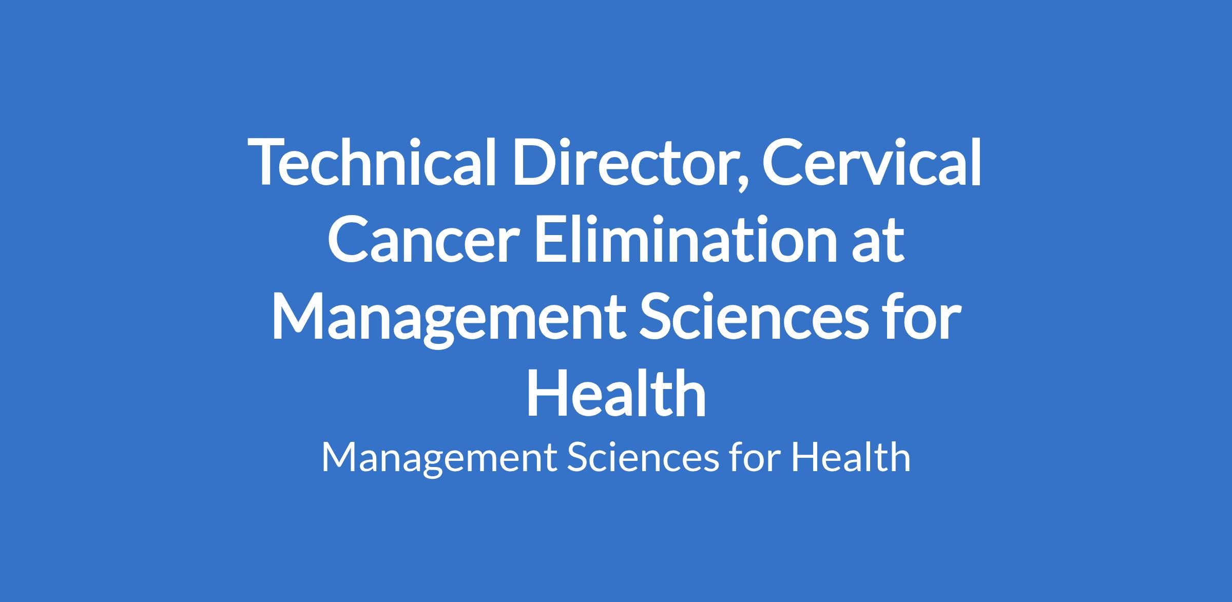 The Technical Director will lead the development, adaptation, and scale-up of integrated screening and treatment models aligned with WHO elimination targets, including HPV testing strategies, screen-and-treat approaches, referral and follow-up systems, and integration of cervical cancer services within primary health care and related service platforms such as HIV, reproductive health, and maternal health programs.