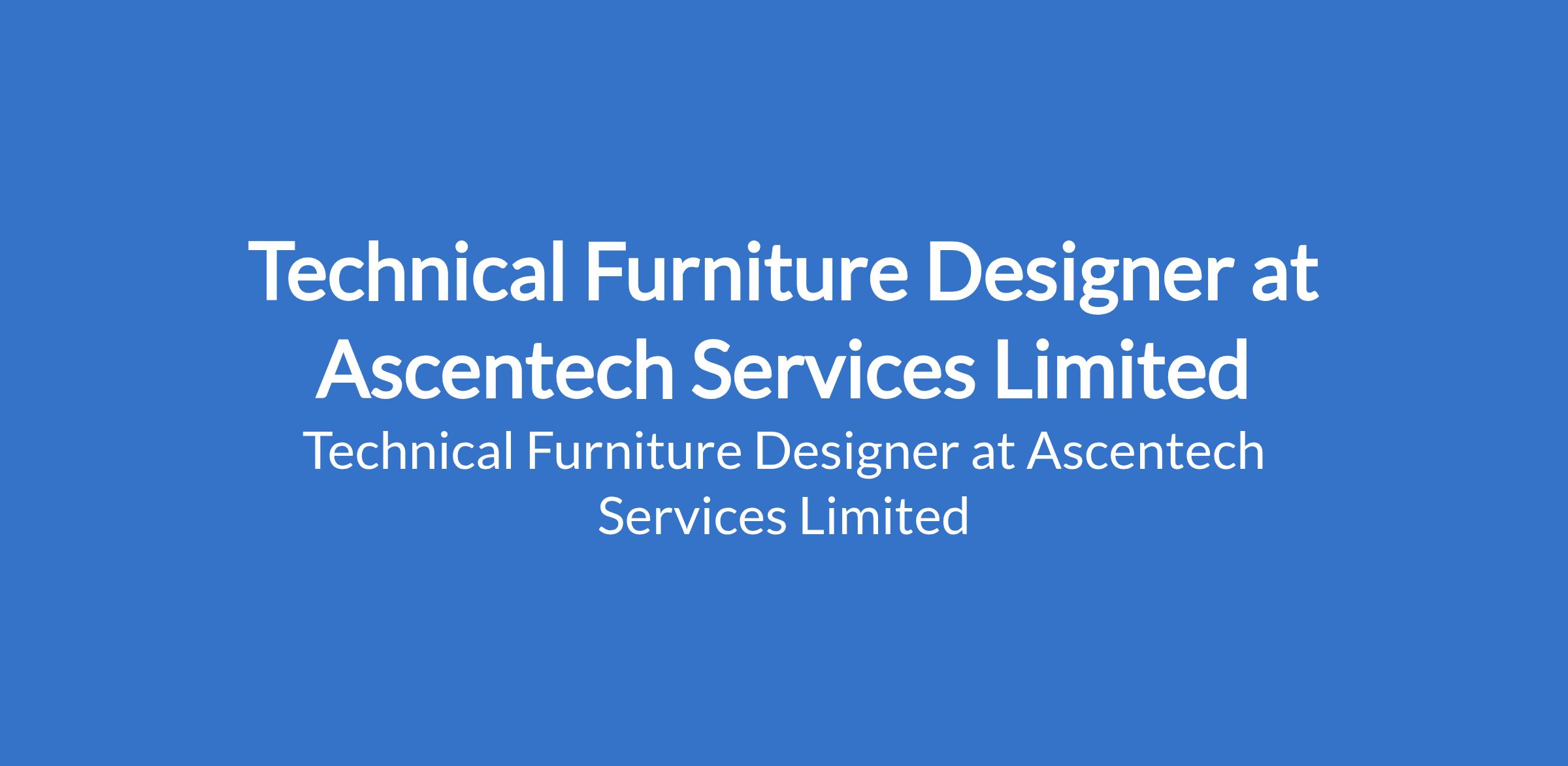 Ascentech Services Limited is recruiting to fill the position of: Technical Furniture Designer. The position is located in Lagos State. Salary: N250,000 - N450,000 monthly. Interested candidates should possess a Bachelors Degree in Industrial Design, Furniture Design, Architecture, or a related field with 35 years experience in furniture design or wood joinery production.