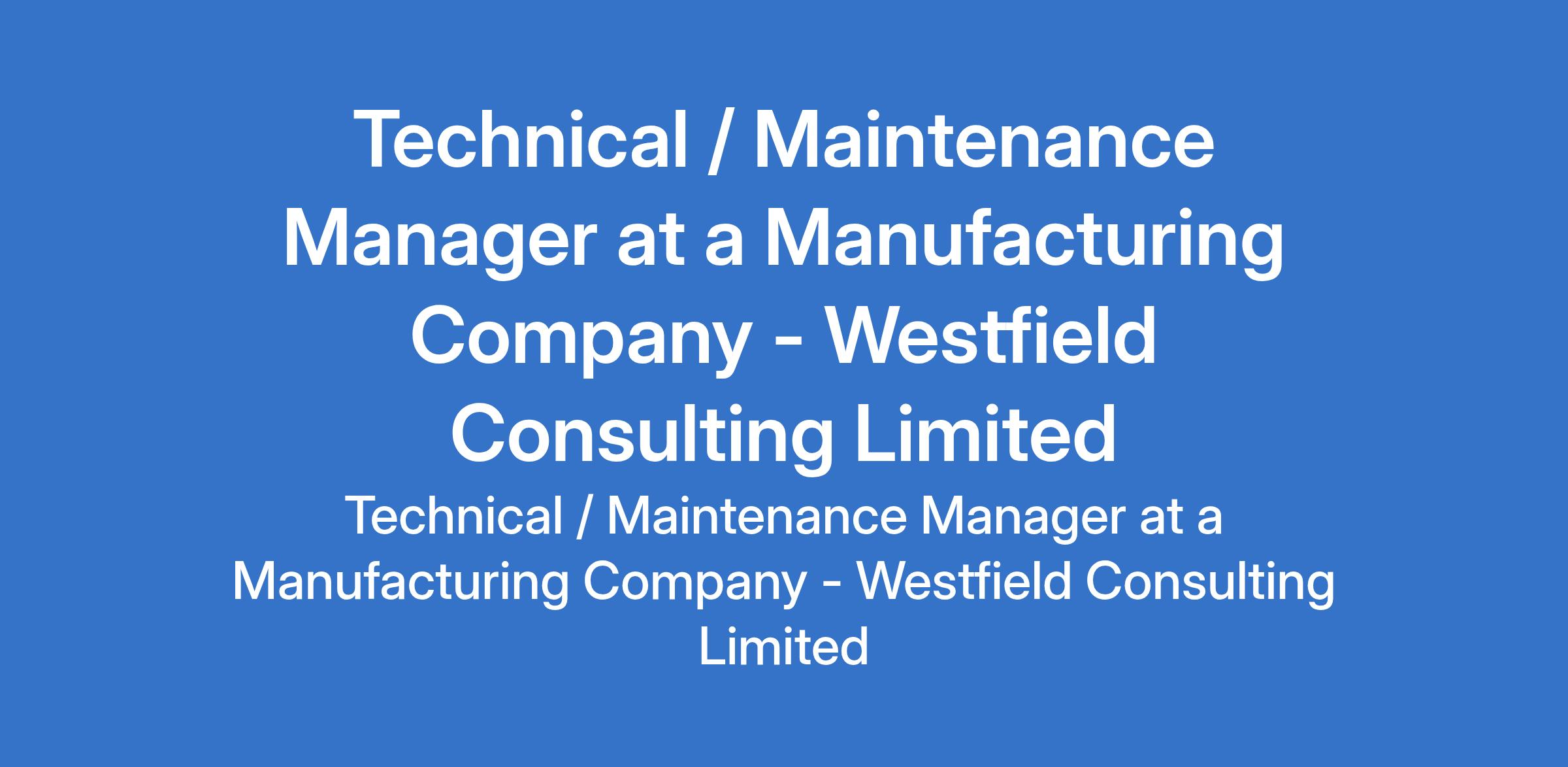 Westfield Consulting Limited - Our client in the Manufacturing space is recruiting to fill the position of: Technical / Maintenance Manager. The position is located in Mowe, Ogun State. Salary: N700,000 N900,000 per month. Interested candidates should possess a B.Eng. / HND qualification with a minimum of 10 years experience in the Manufacturing Industry.