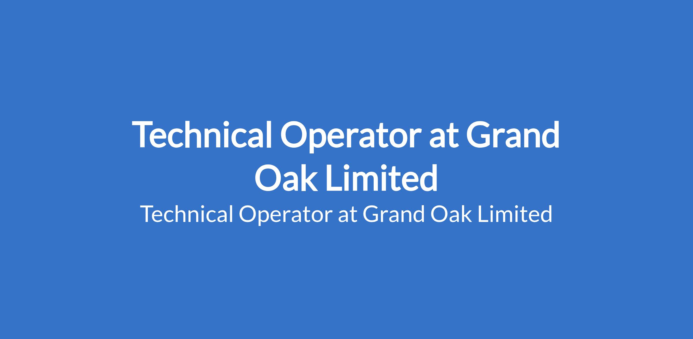 Technical Operator at Grand Oak Limited