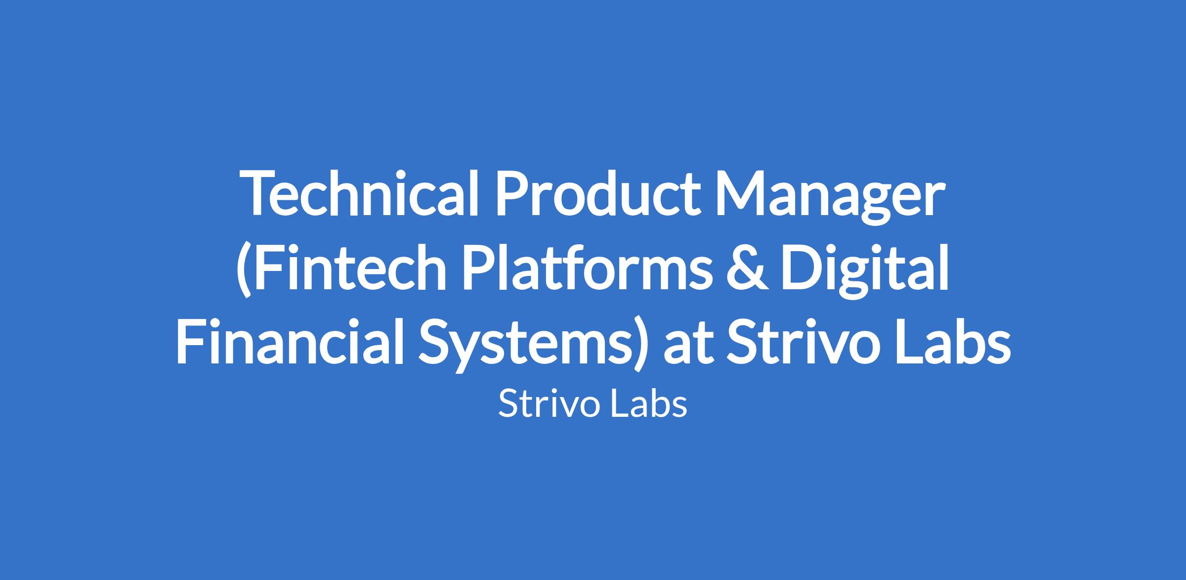 Technical Product Manager (Fintech Platforms & Digital Financial Systems) at Strivo Labs