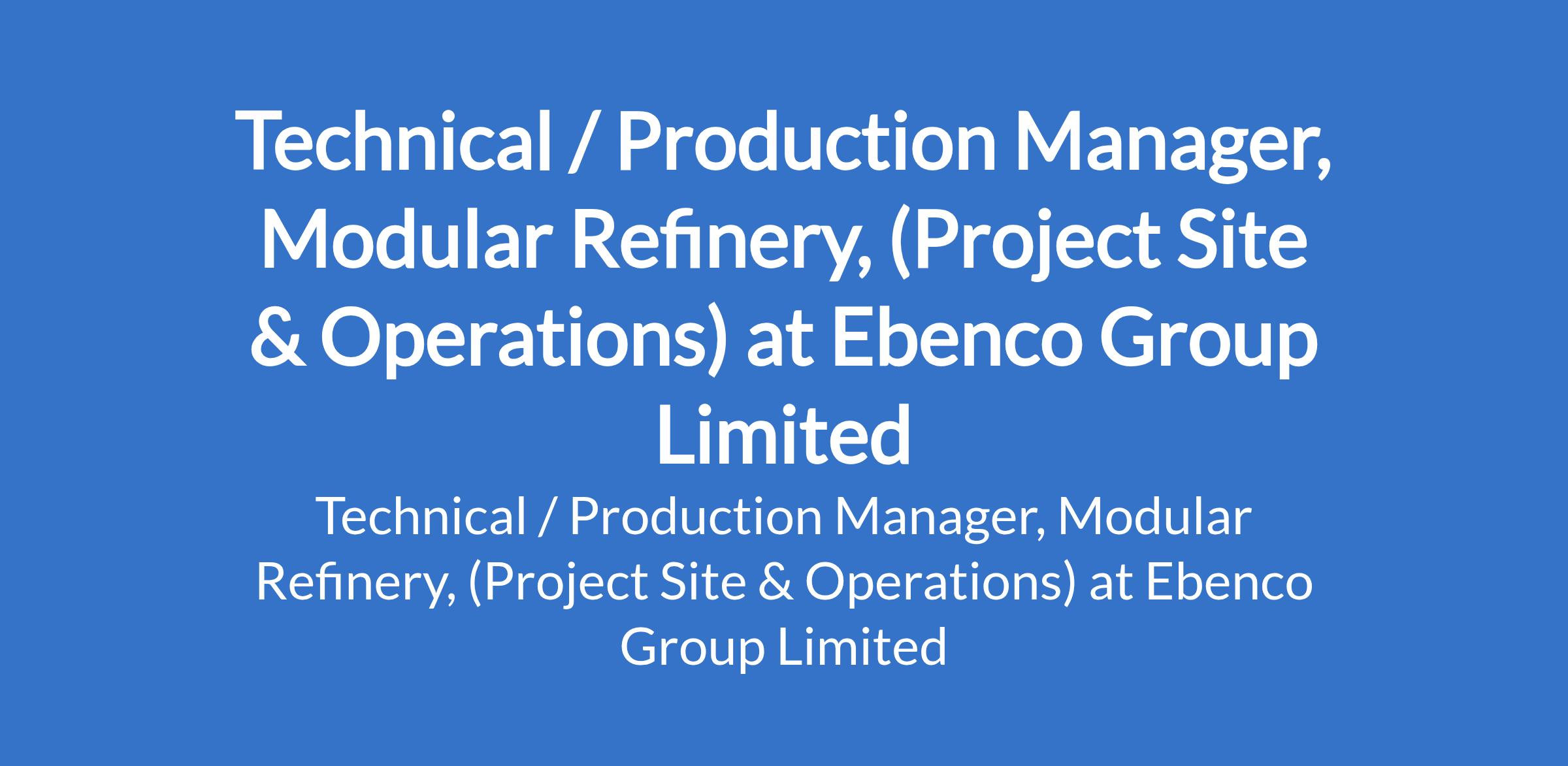 Ebenco Group Limited is recruiting to fill the position of: Technical / Production Manager, Modular Refinery, (Project Site & Operations). The position is located in Warri North LGA, Koko - Delta State. Interested candidates should possess a Bachelors Degree in Chemical, Mechanical, or Petroleum Engineering with 1015 years of refinery or downstream oil & gas experience; COREN registration is mandatory.